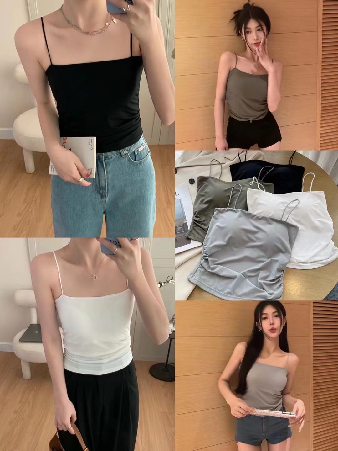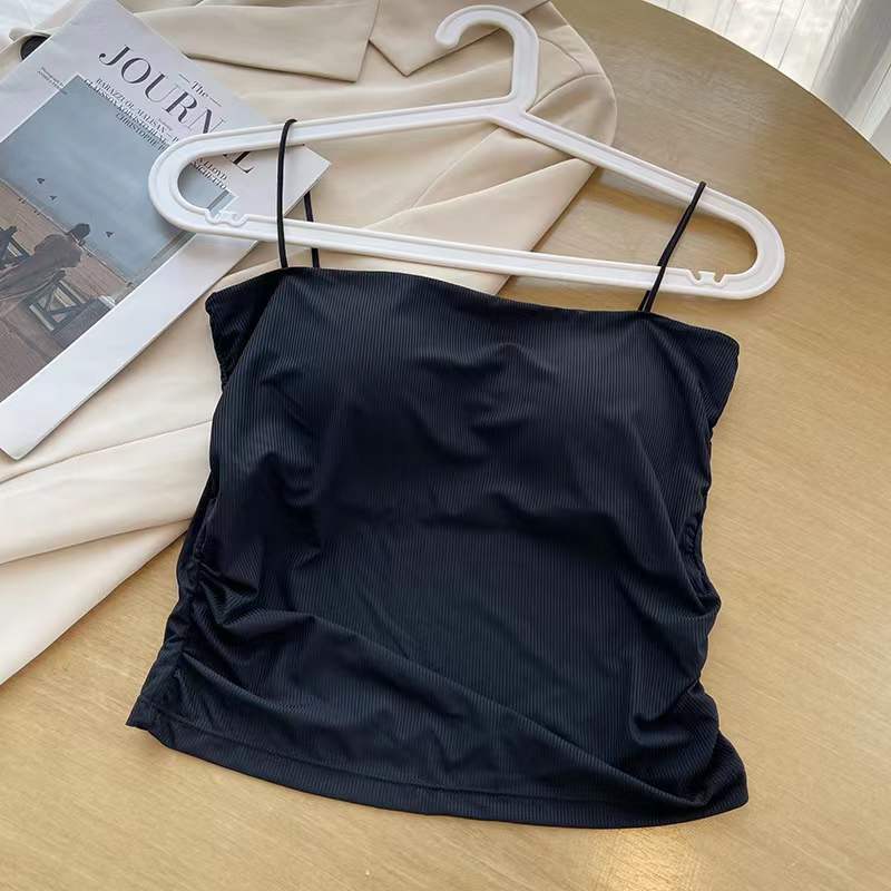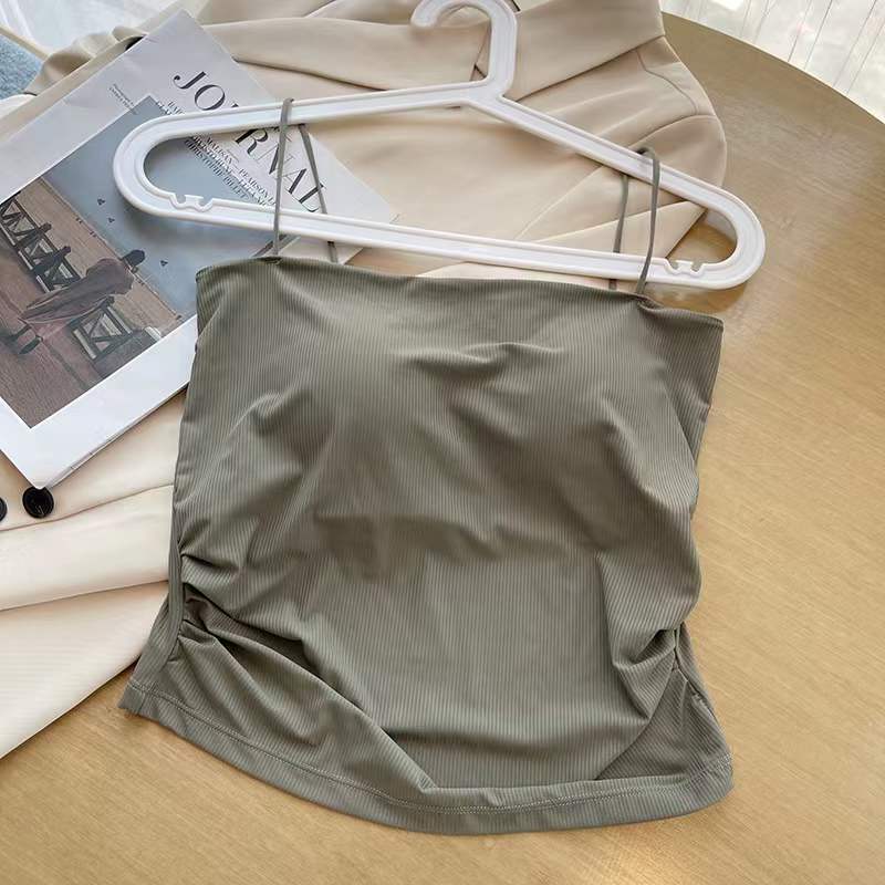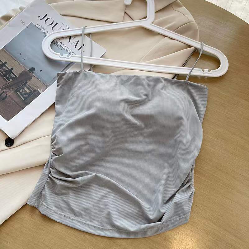아이스 실크 232 # 솔리드 컬러 올 매치 아이스 실크 카미 솔 여성용 슬림 핏 내부 튜브 탑 여름 외부 착용 탑 가슴 패드