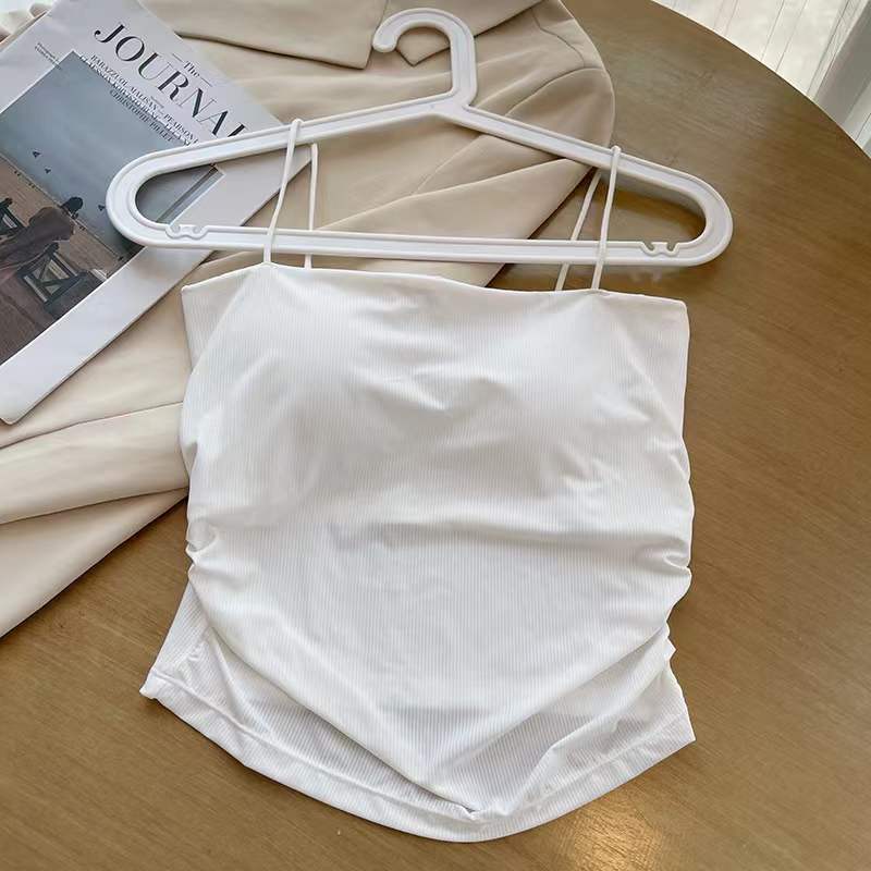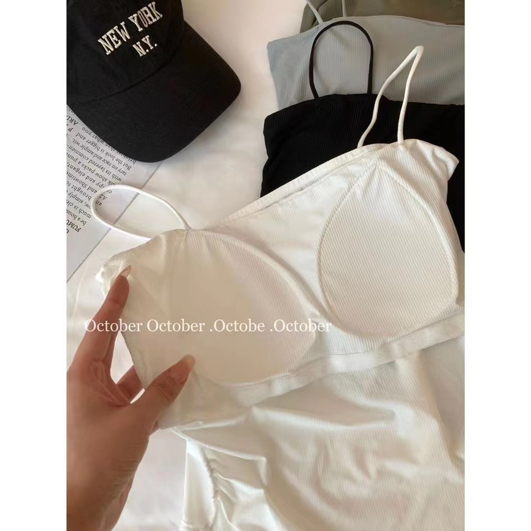 아이스 실크 232 # 솔리드 컬러 올 매치 아이스 실크 카미 솔 여성용 슬림 핏 내부 튜브 탑 여름 외부 착용 탑 가슴 패드스토어 가기