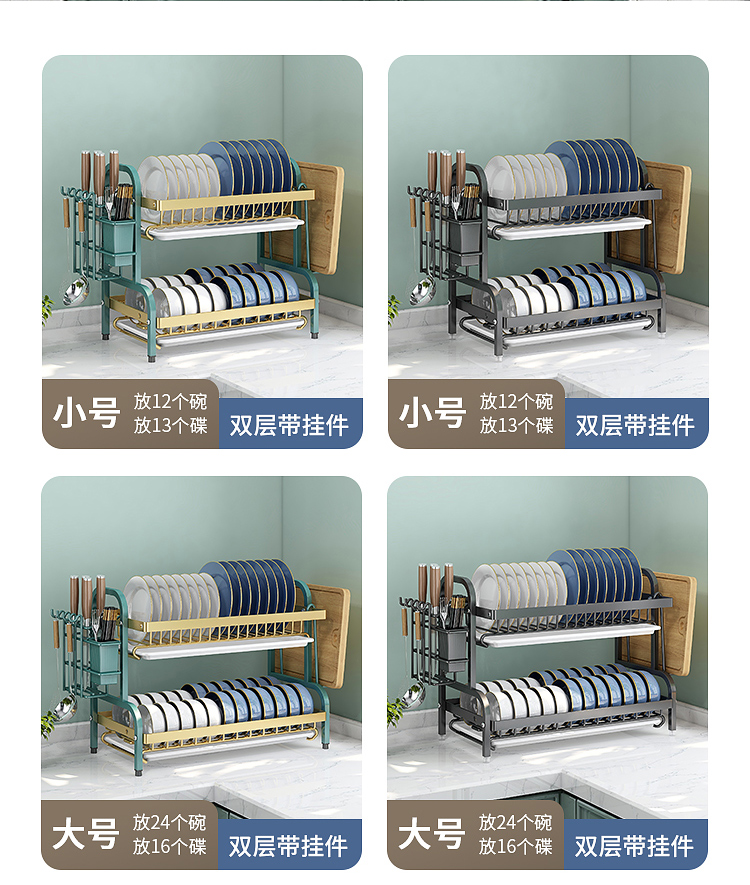 주방 보관 랙 요리 드레인 랙 스테인레스 스틸 접시 랙 가정용 카운터 탑 컵 보드 더블 레이어 그릇 및 젓가락 접시 컬렉션 북진