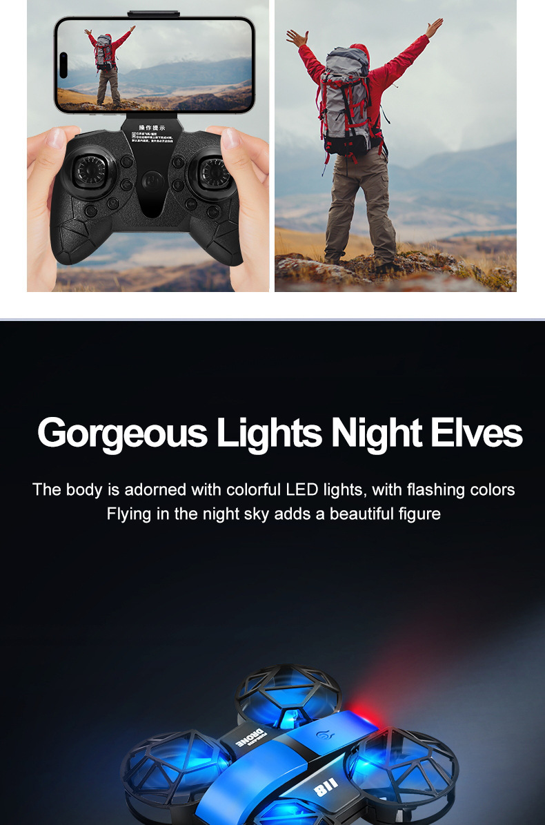 국경 간 신제품 811 미니 공중 UAV 원격 제어 항공기 낙하 방지 높은 마이크로 쿼드 콥터 장난감
