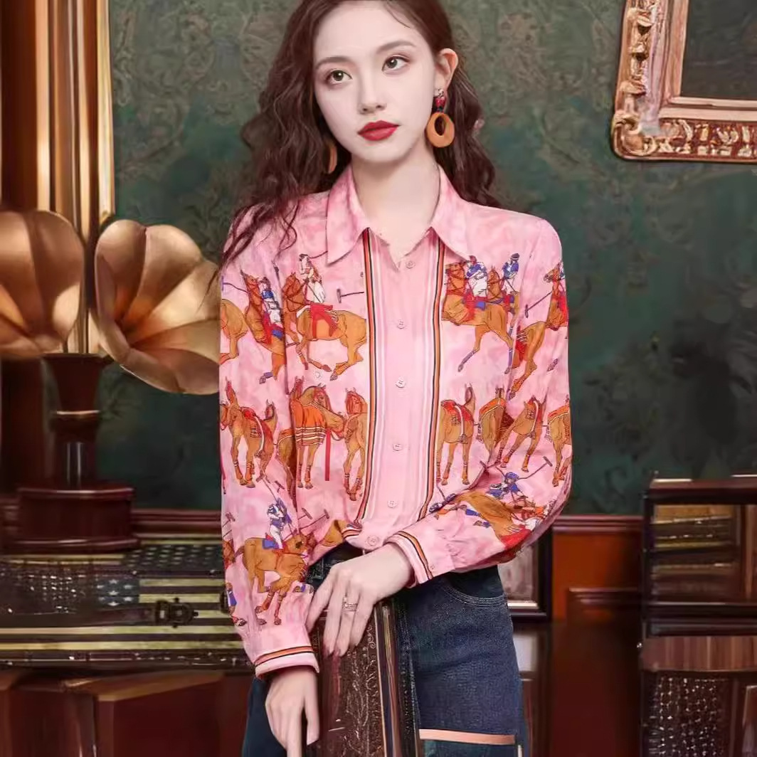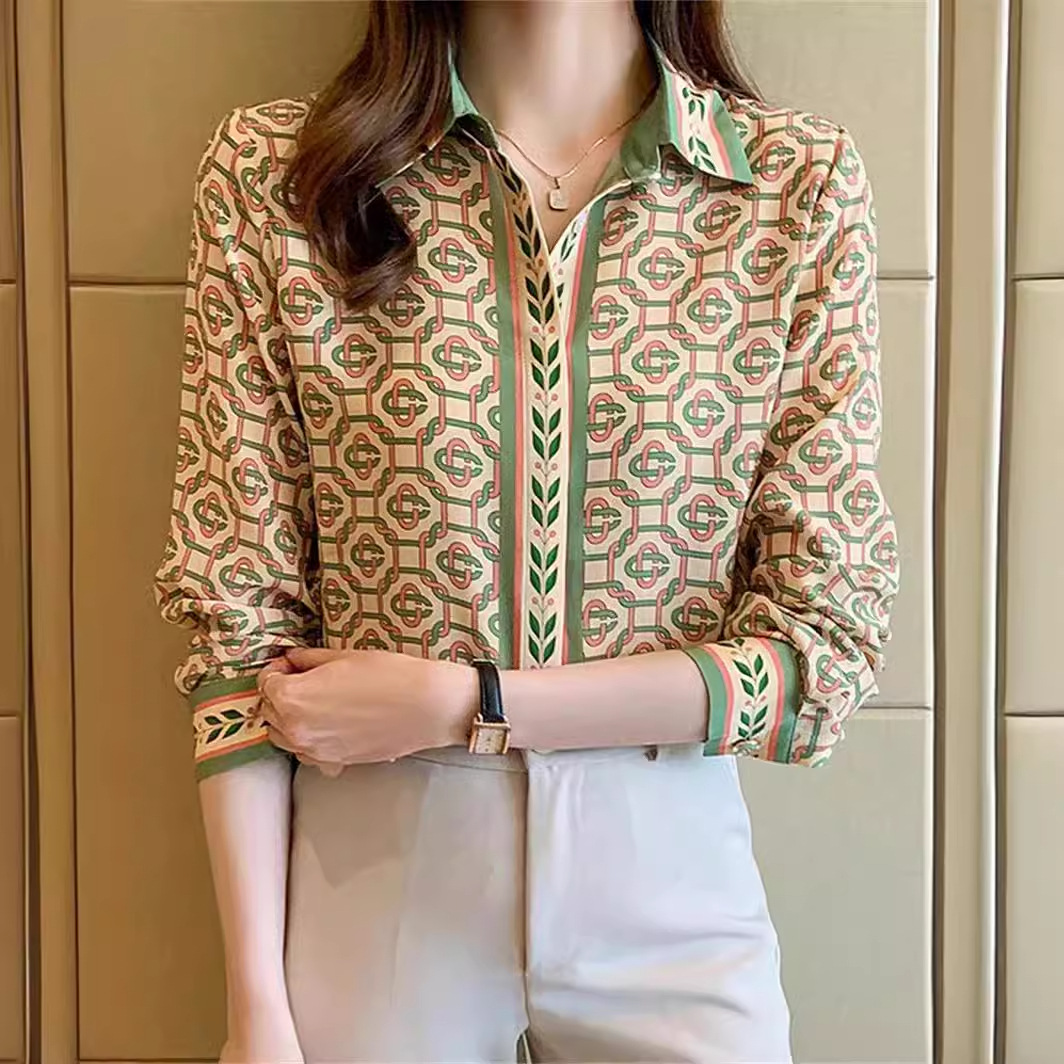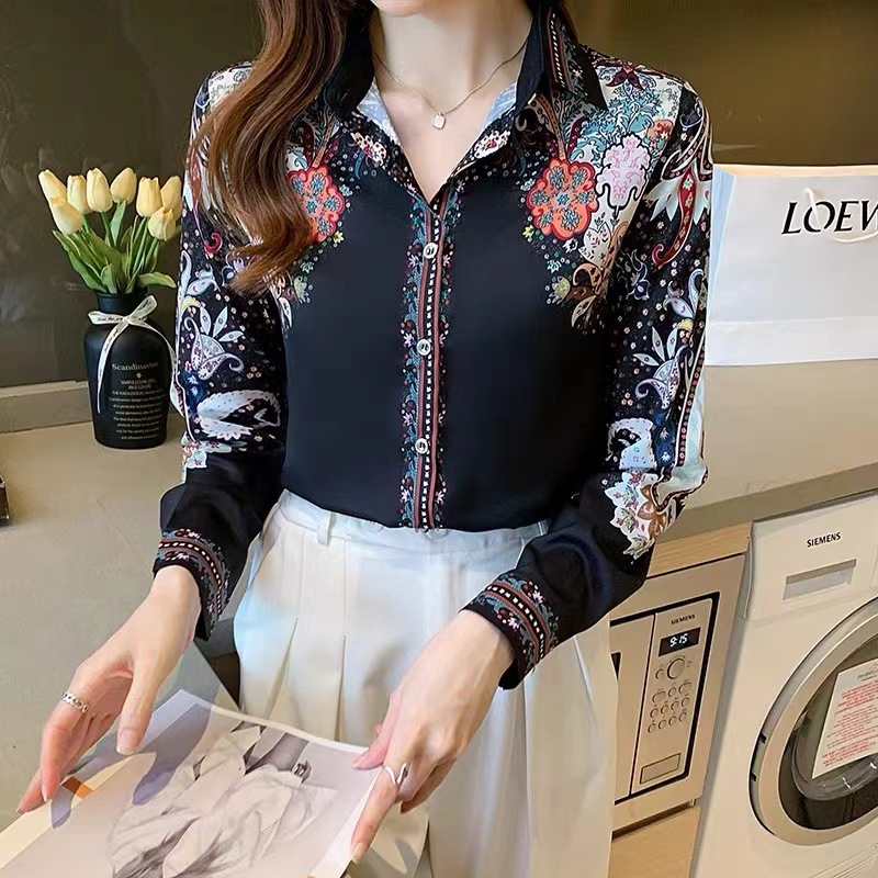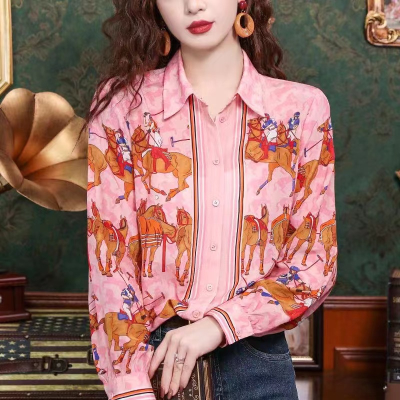유럽과 미국의 국경 간 대외 무역 셔츠 인쇄 셔츠 여성용 동남아시아 봄과 가을 느슨한 긴팔 고급 중년 및 노인 카디건스토어 가기