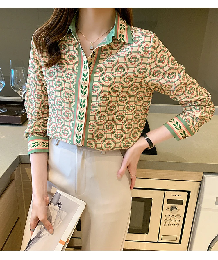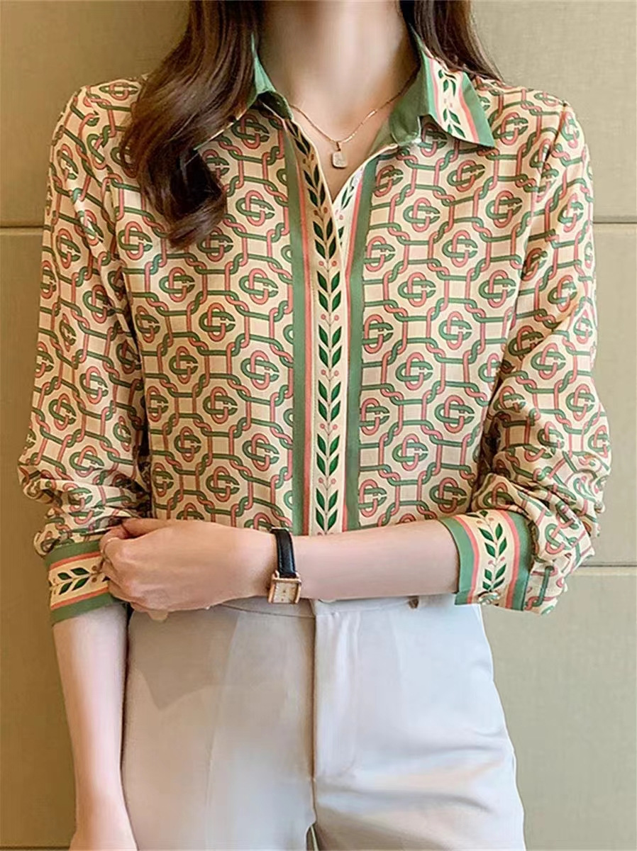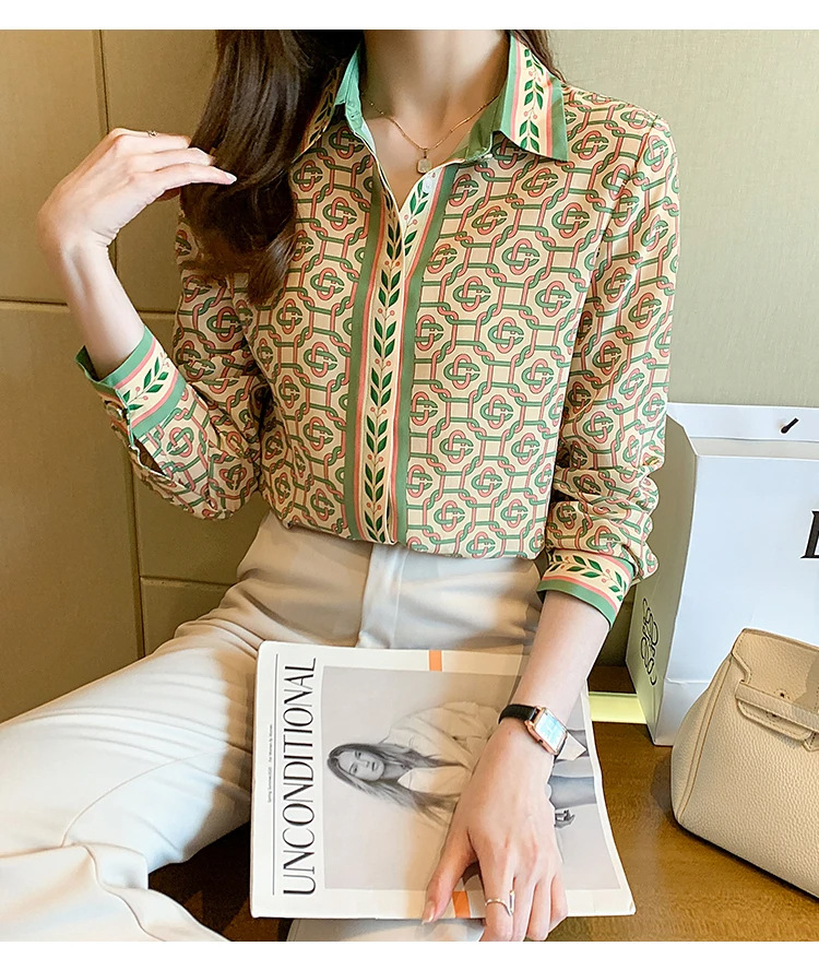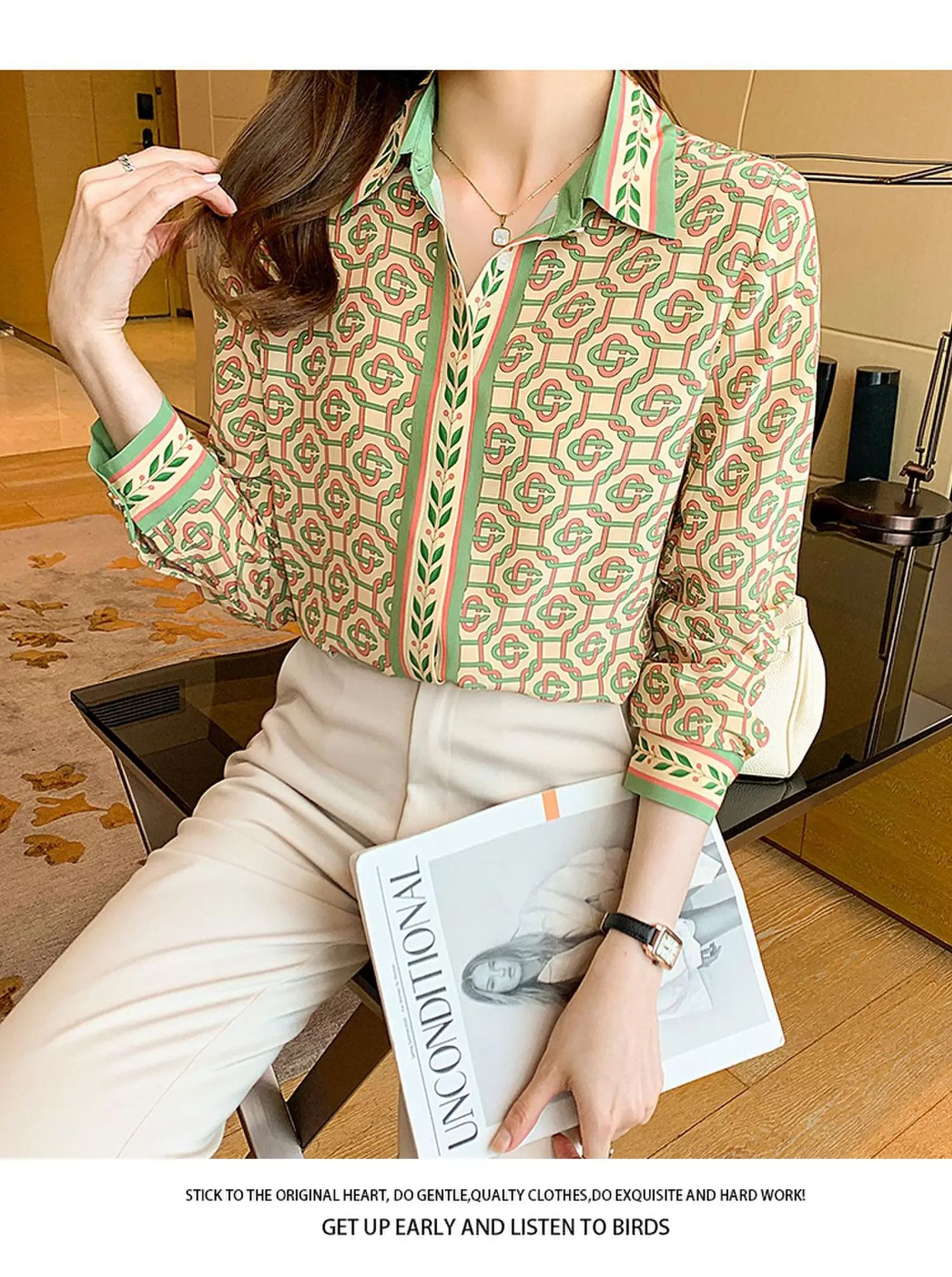 유럽과 미국의 국경 간 대외 무역 셔츠 인쇄 셔츠 여성용 동남아시아 봄과 가을 느슨한 긴팔 고급 중년 및 노인 카디건스토어 가기