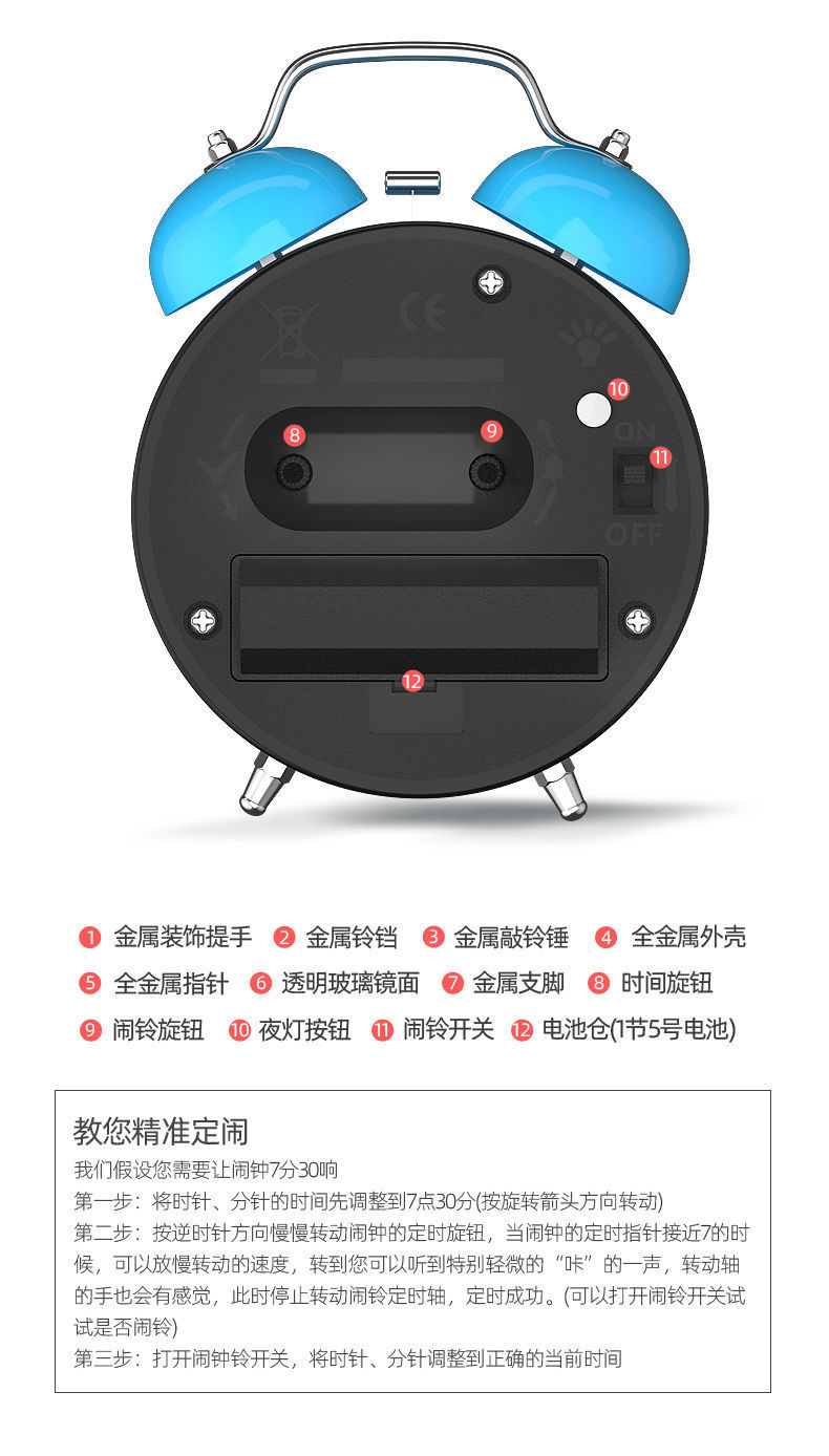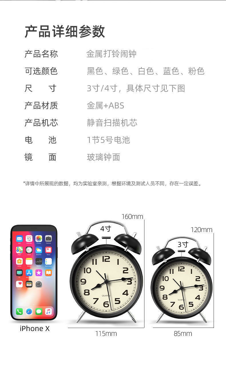 작은 알람 시계 침대 옆 간단한 학생 알람 시계 금속 어린이 빛나는 작은 알람 시계 세대 도매스토어 가기