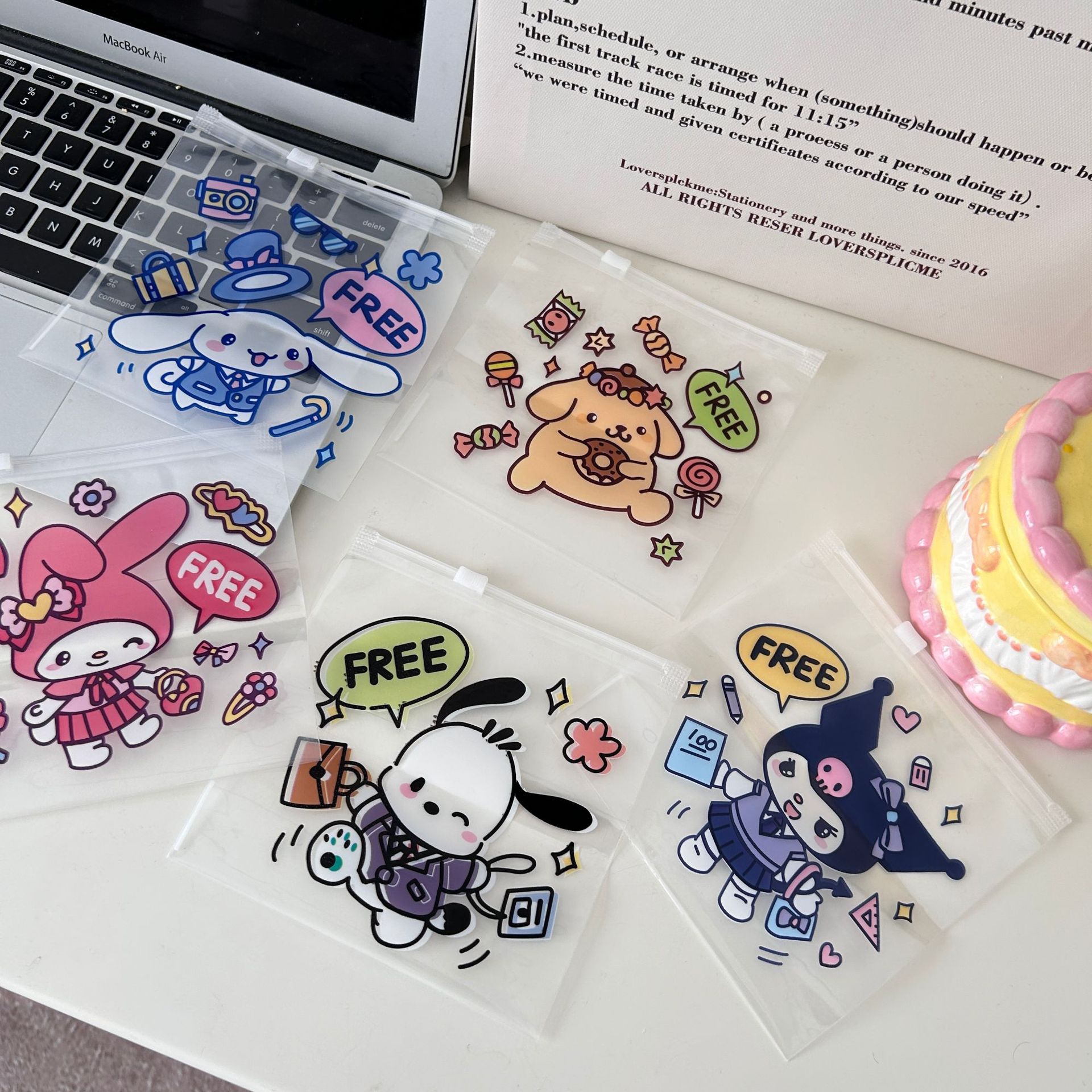 14*14cm 저장 가방 만화 귀여운 투명 지퍼 자체 밀봉 포장 가방 스낵 보석 보관 가방 봉인