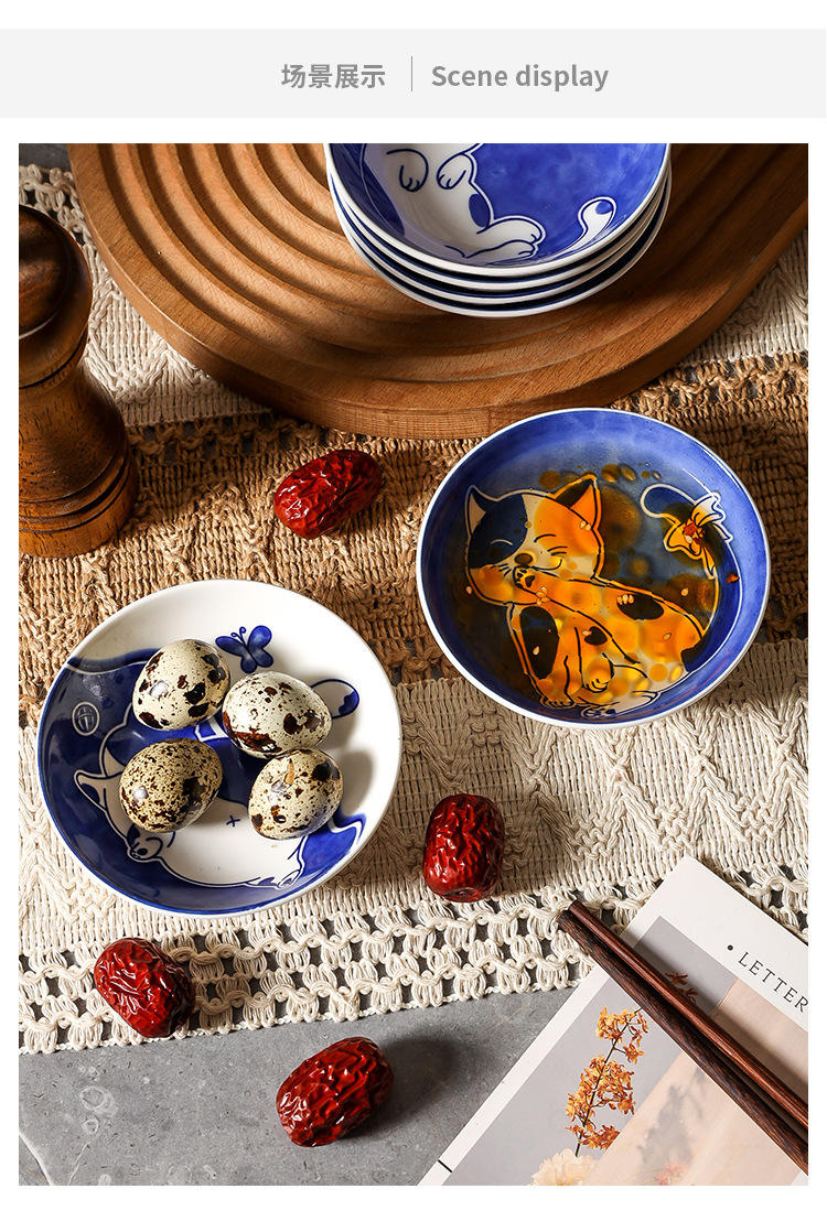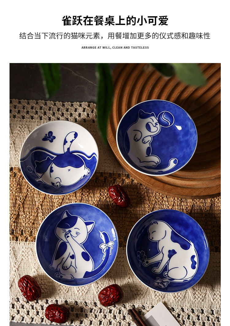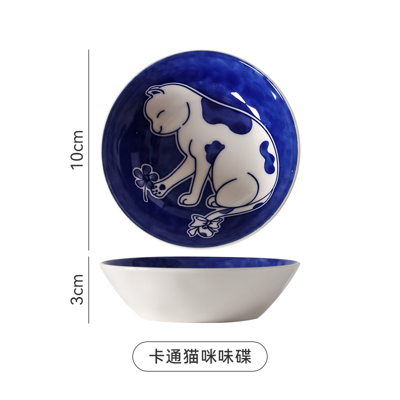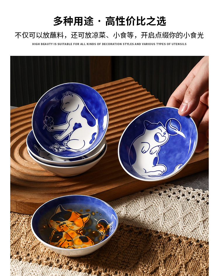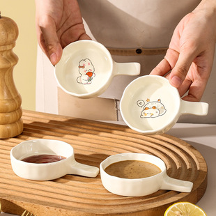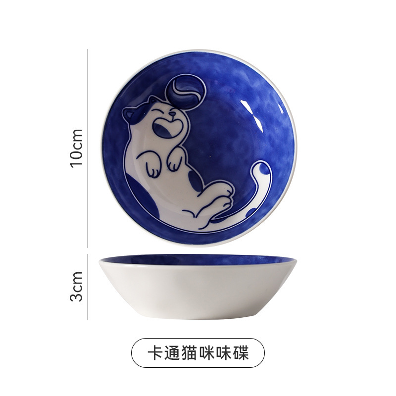 Ins 귀여운 귀여운 고양이 맛 접시 세라믹 라운드 조미료 어린이 만화 창조적 인 식기 식초 접시 접시스토어 가기