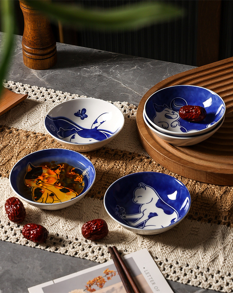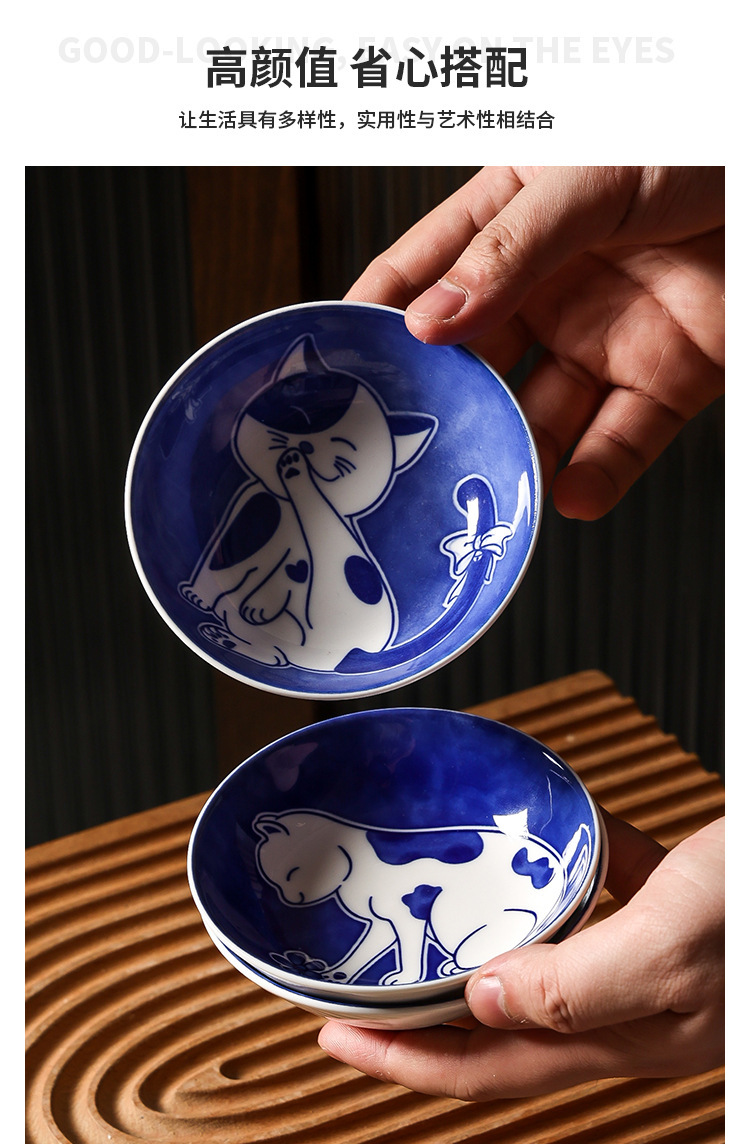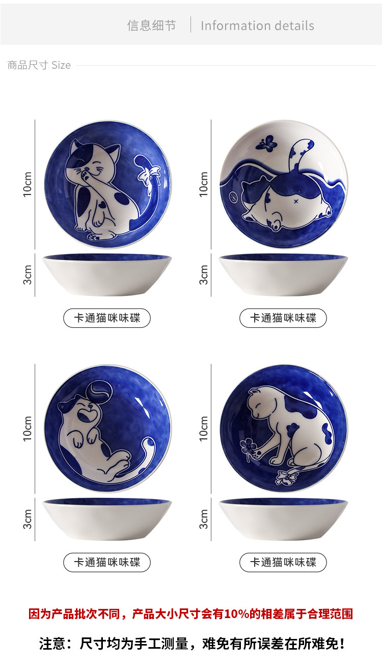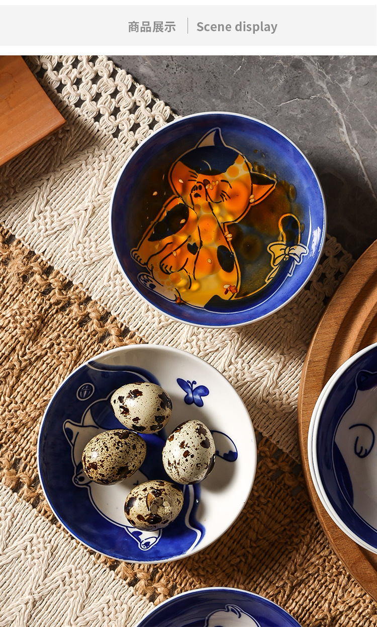 Ins 귀여운 귀여운 고양이 맛 접시 세라믹 라운드 조미료 어린이 만화 창조적 인 식기 식초 접시 접시스토어 가기