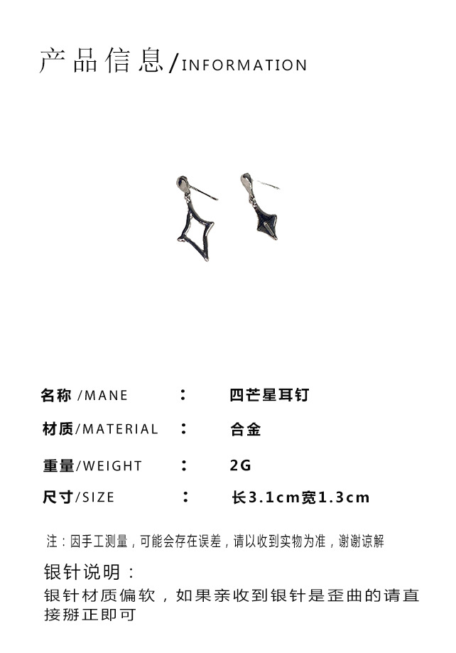 귀 구멍이없는 4 개의 망동 비대칭 틈새 모기 향 판 귀걸이 통근 매일 올 매치 귀걸이를위한 새로운 간단한 귀걸이스토어 가기
