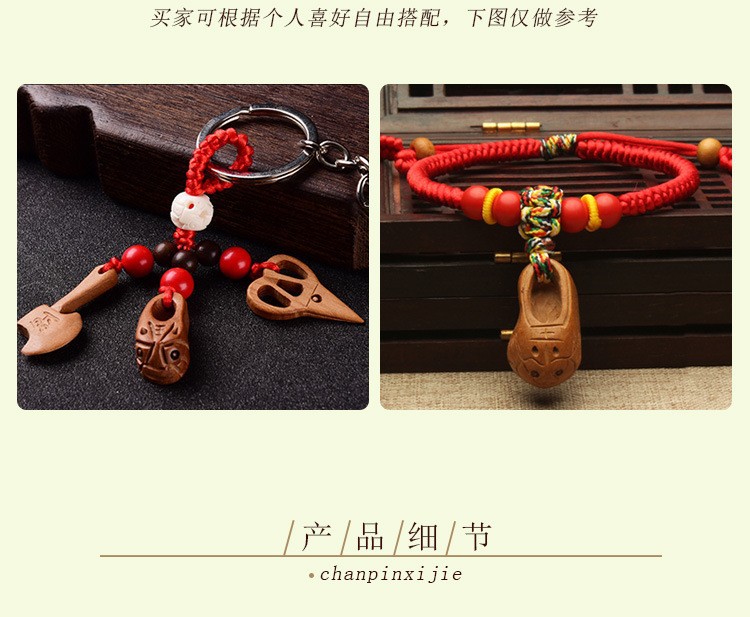 복숭아 나무 호랑이 머리 신발 칼 도끼 diy 작은 액세서리 키 체인 아기 복숭아 나무 조각 웬차오 펜 타워 펜던트 펜던트스토어 가기