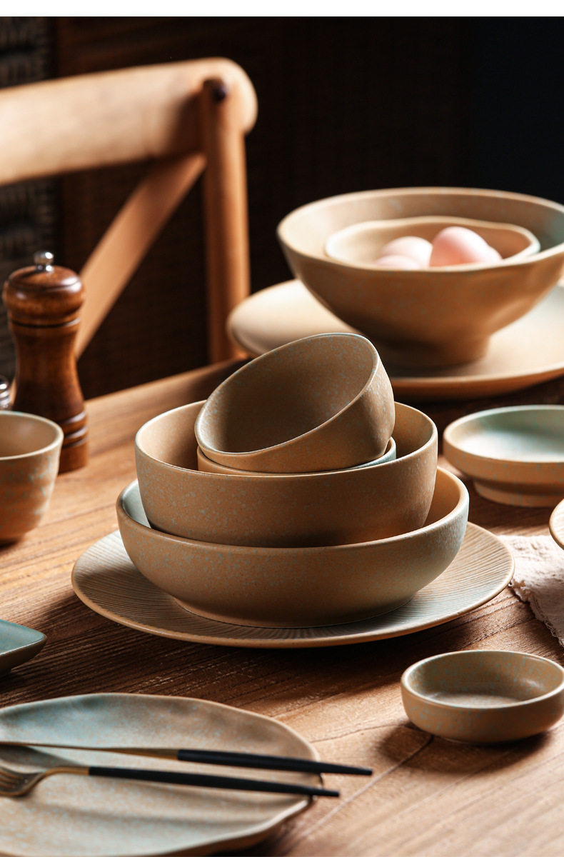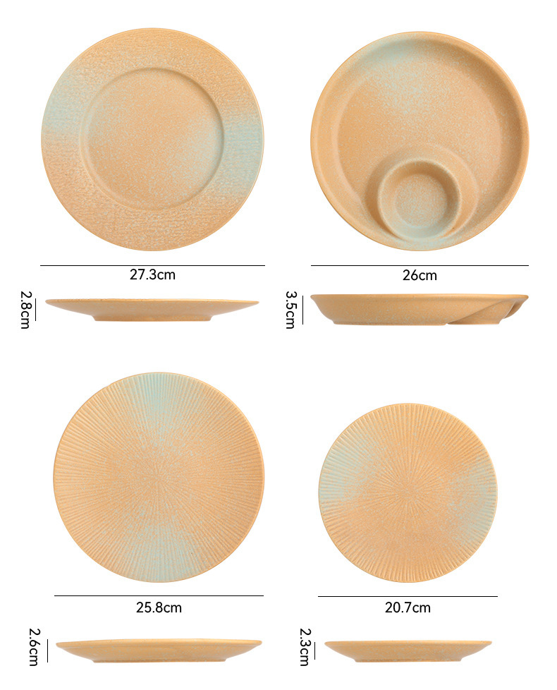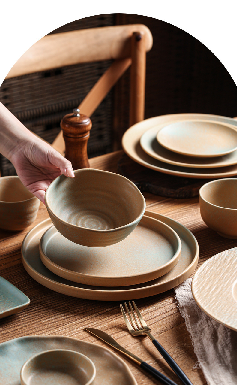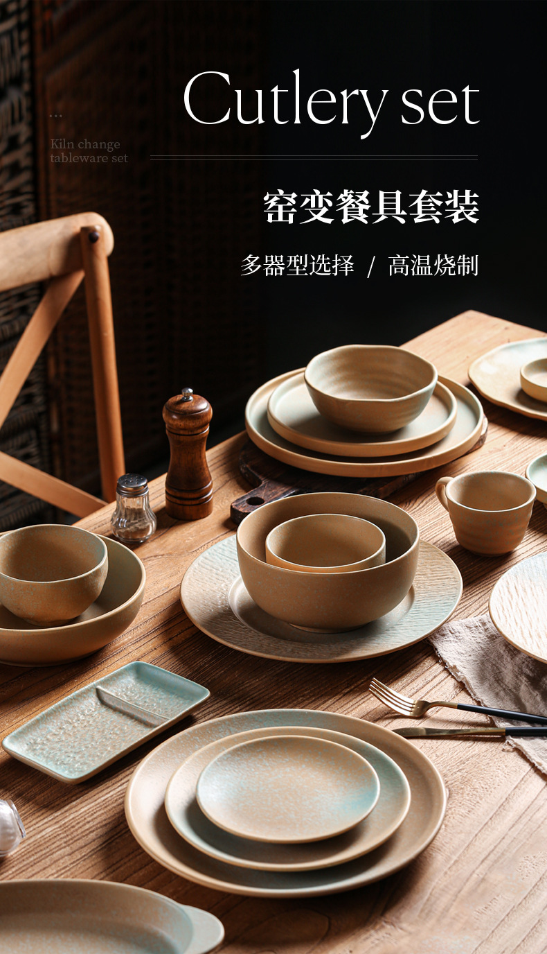 빈티지 일본식 세라믹 요리 및 요리 식기 세트 조합 높은 색상 가치 레스토랑 가정용 스테이크 요리 및 요리 수프 그릇