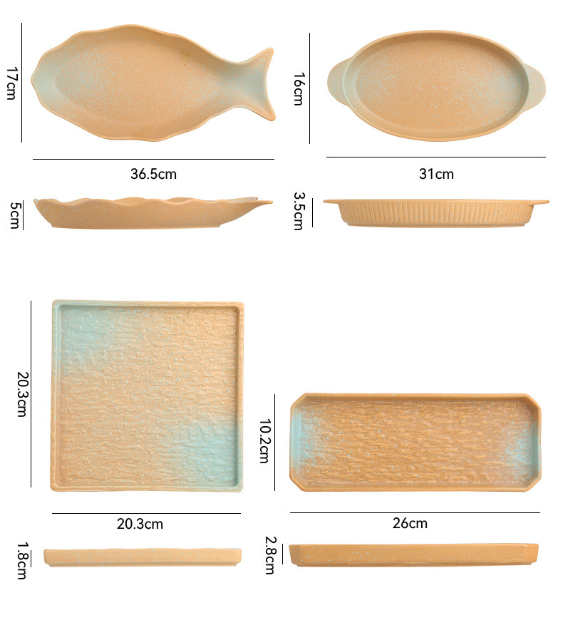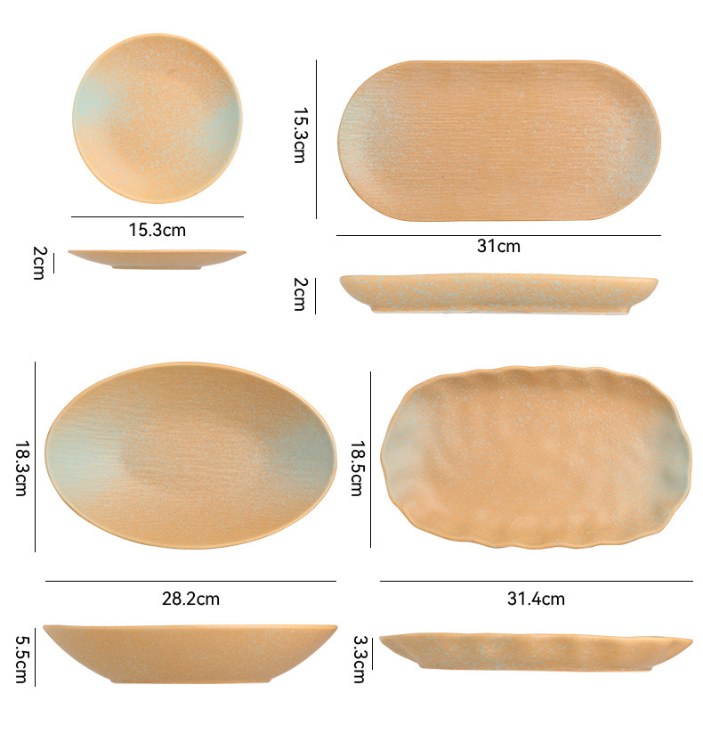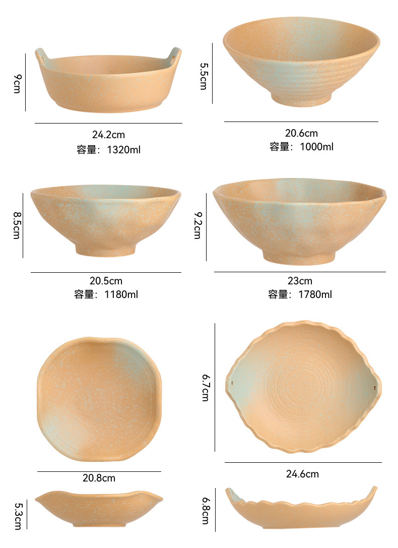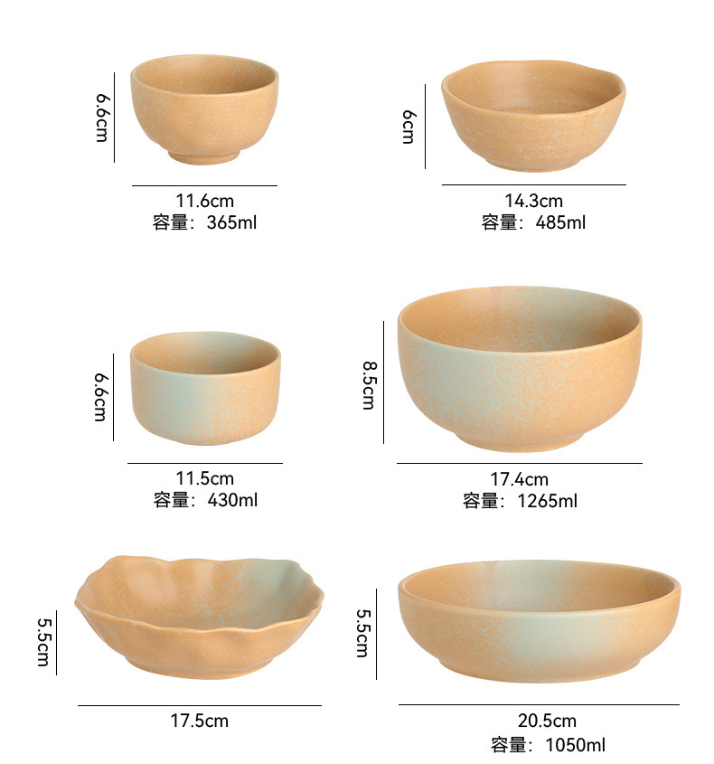 빈티지 일본식 세라믹 요리 및 요리 식기 세트 조합 높은 색상 가치 레스토랑 가정용 스테이크 요리 및 요리 수프 그릇