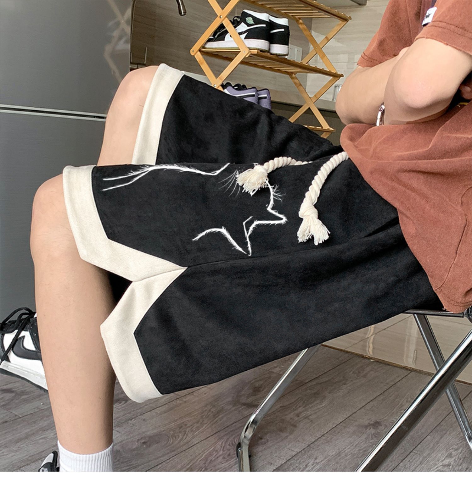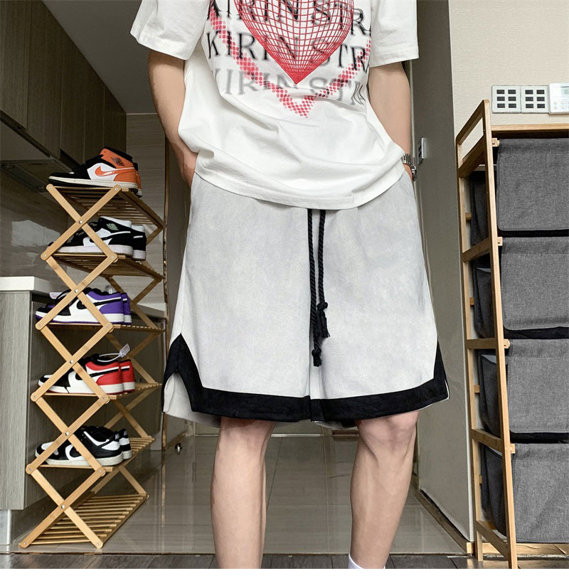미국식 하이 스트리트 컬러 블록 폴딩 코너 스포츠 반바지 남자 2024 외부 착용 캐주얼 바지 청소년 느슨한 바지스토어 가기