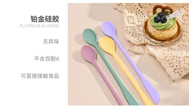 한국 식품 급료 실리콘 우유 분말 교반 바 커피 숟가락 등반 숟가락 두 배 스크레이퍼 작은 숟가락 디저트 스푼