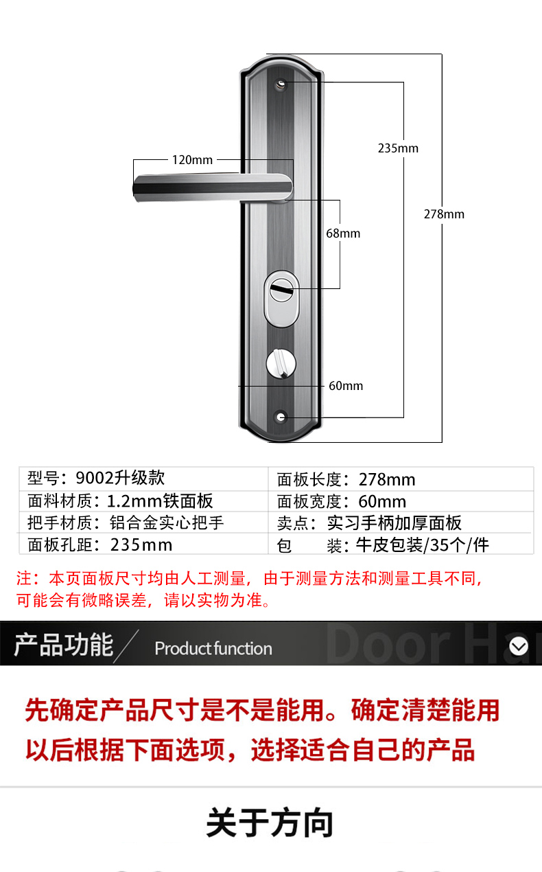 두꺼운 손잡이 보안 도어 패널 정원 블랙 골드 1.2mm 두께의 철 패널 알루미늄 합금 단단한 손잡이 도난 방지 Beiqin스토어 가기