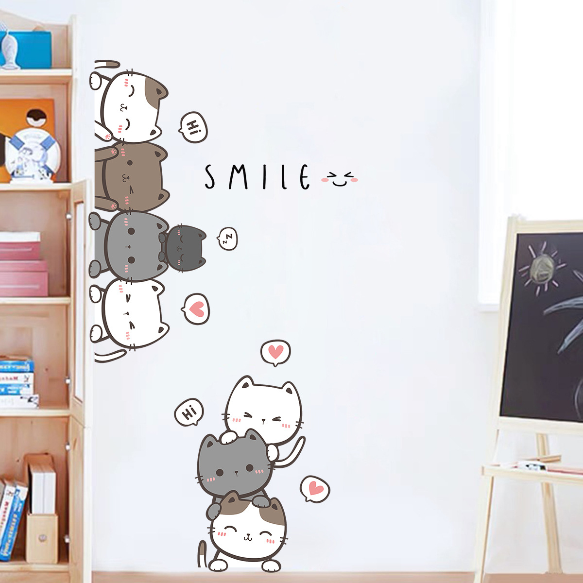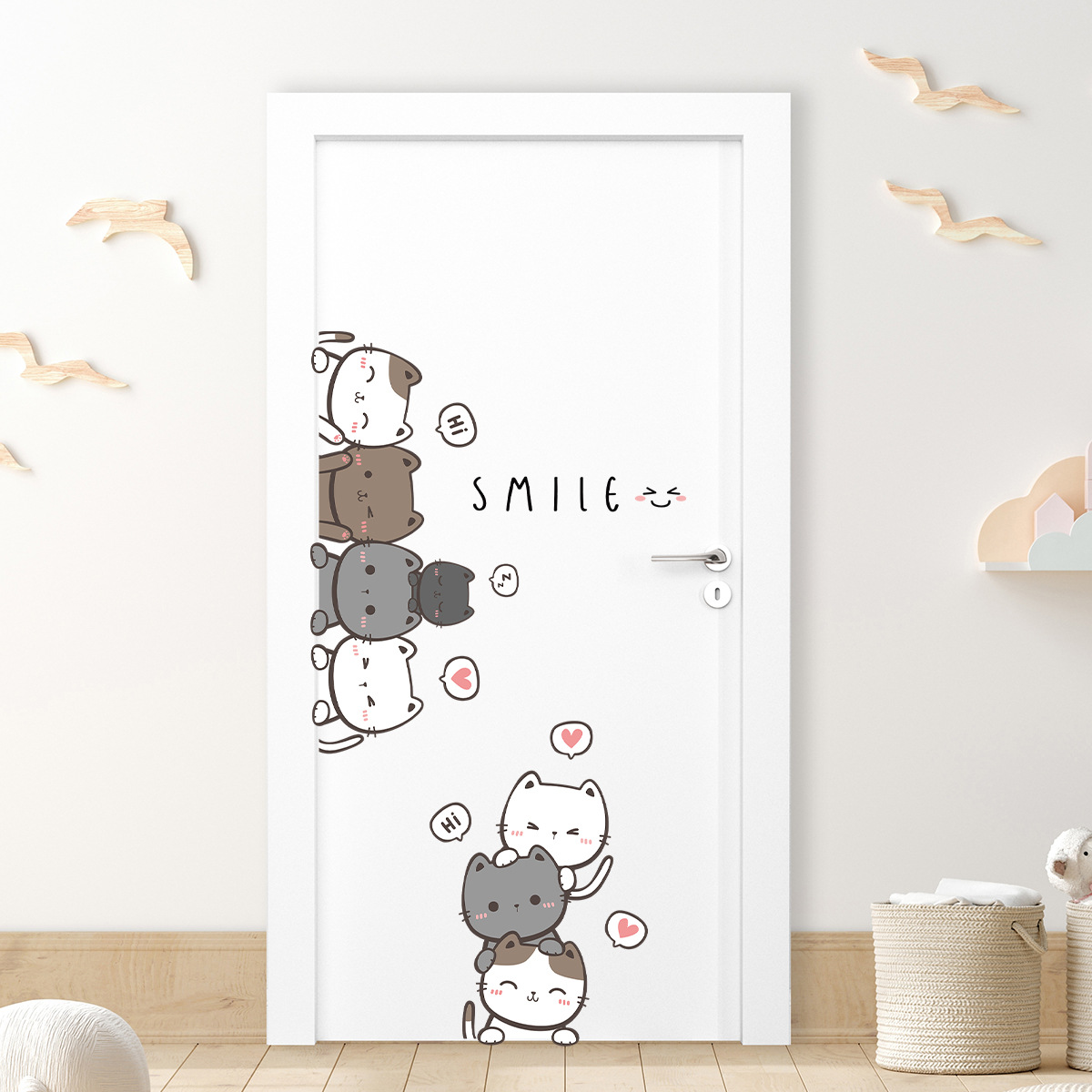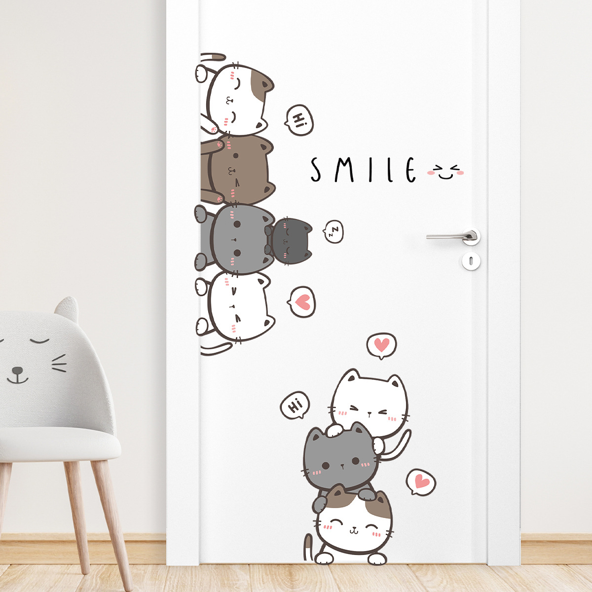 귀여운 고양이 문 스티커 만화 창조적 인 Ins 자체 접착 벽 스티커 어린이 방 유치원 장식 스티커 BR0311E스토어 가기
