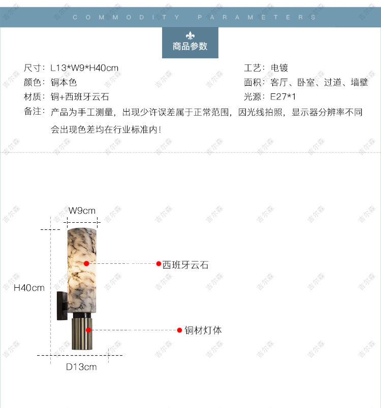 스페인 수입 Yunshi Nordic 심플 라이트 럭셔리 호텔 홈스테이 거실 침실 침실 모든 구리 벽 램프