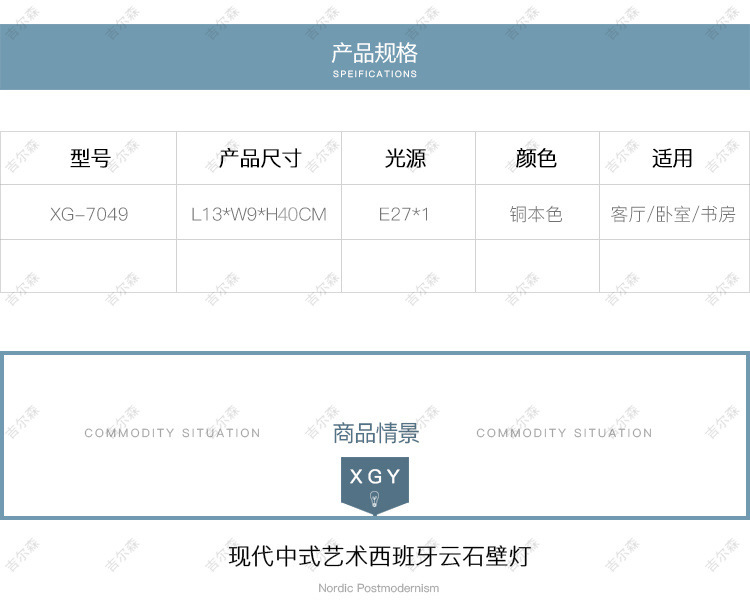 스페인 수입 Yunshi Nordic 심플 라이트 럭셔리 호텔 홈스테이 거실 침실 침실 모든 구리 벽 램프스토어 가기