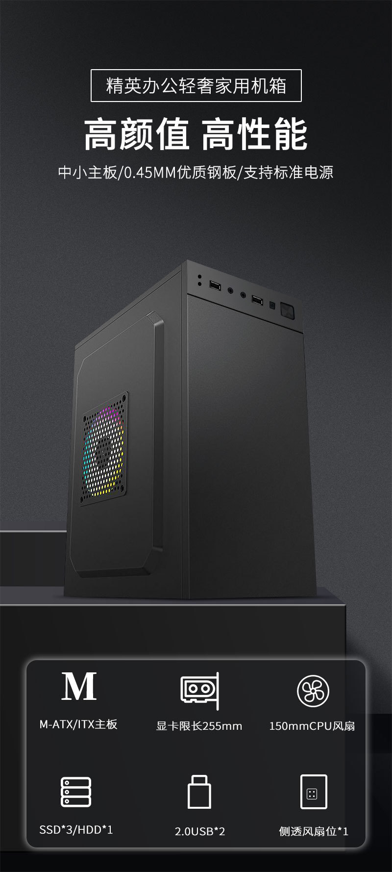 맞춤형 Taike Zhongdian M2 컴퓨터 케이스 비즈니스 오피스 단순 중소형 보드 matx itx 데스크탑 빈 상자스토어 가기
