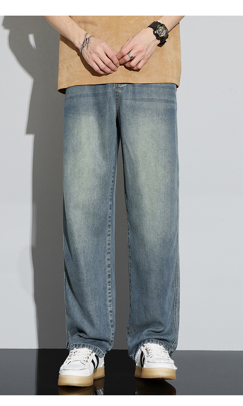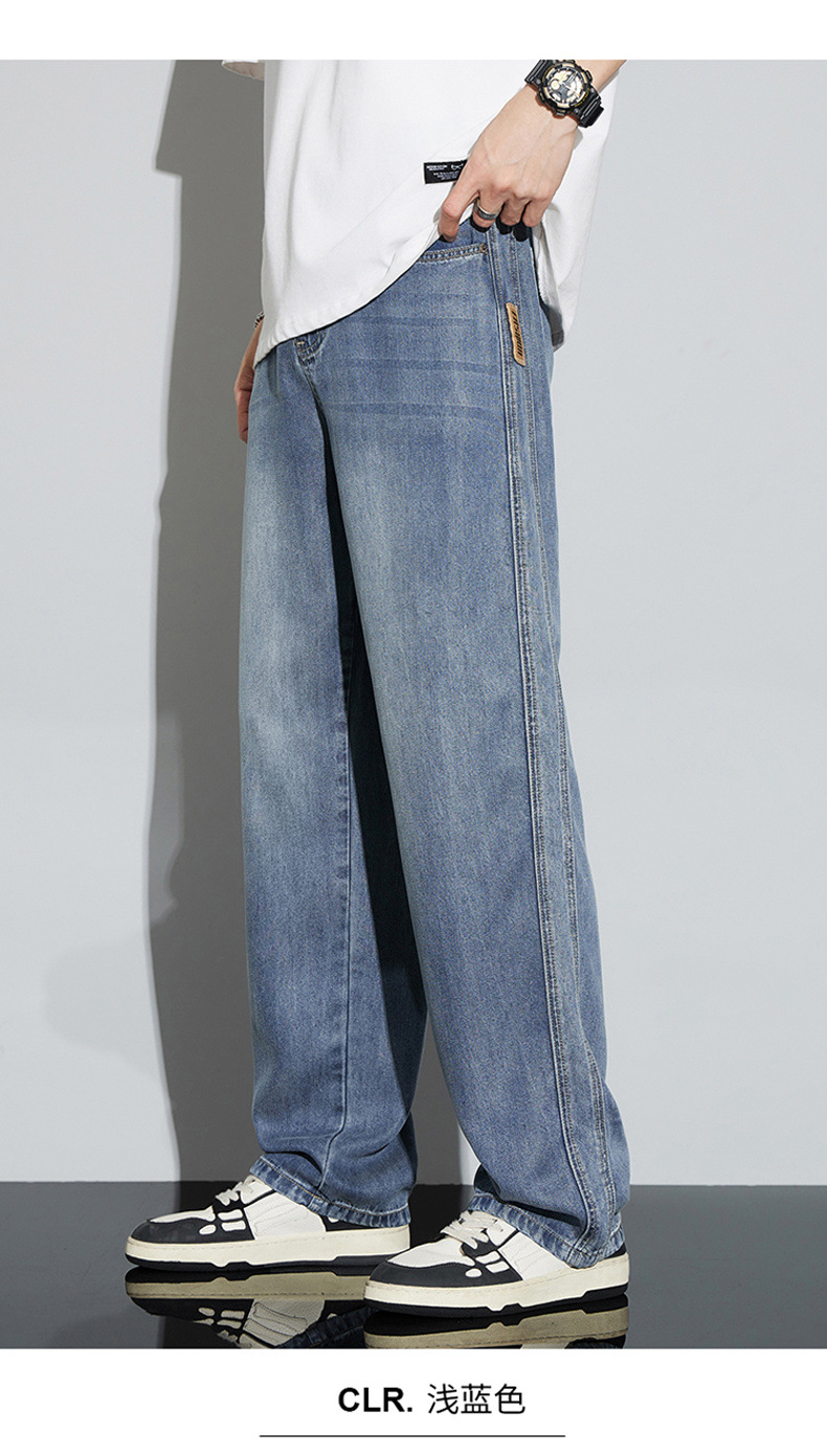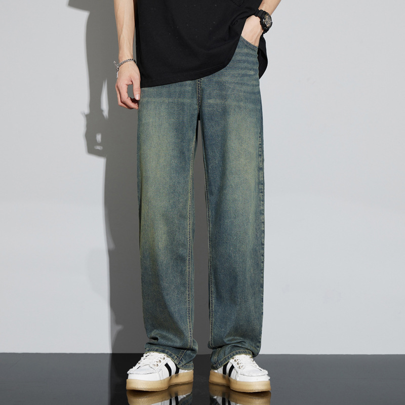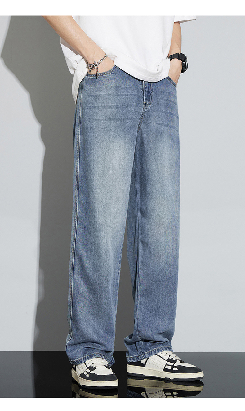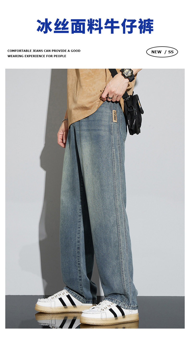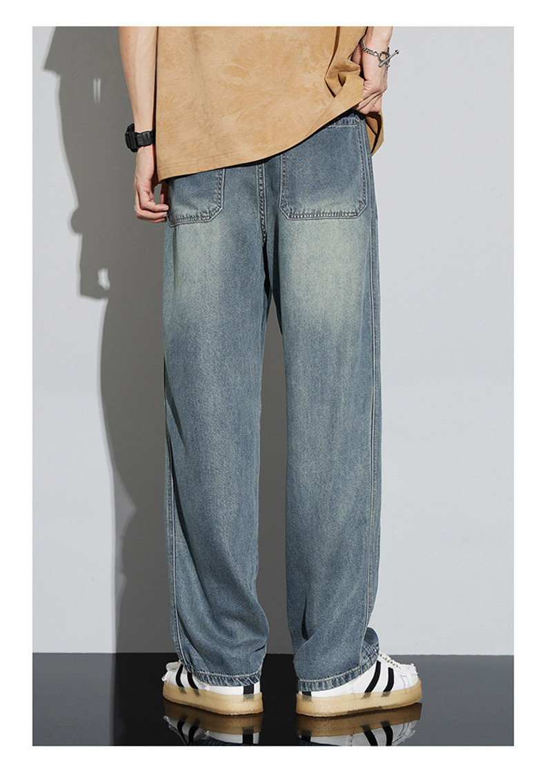 바지 남성 여름 아메리칸 스타일 레트로 남성 의류 텐셀 스트레치 남성 바지 얇은 걸레 바지 스트레이트 남성용 청바지스토어 가기