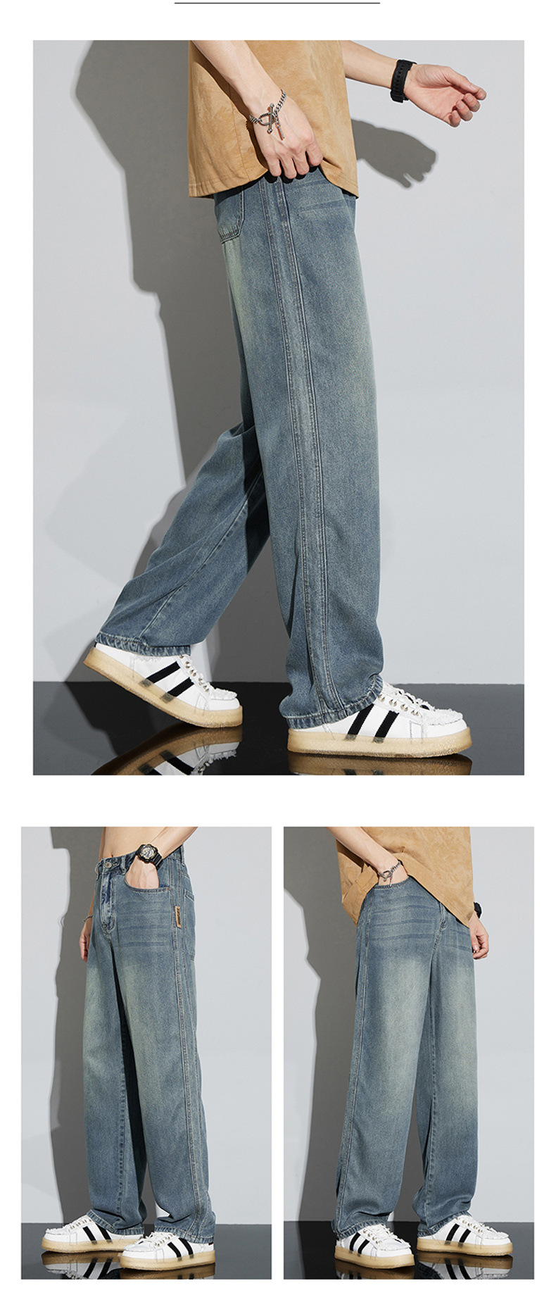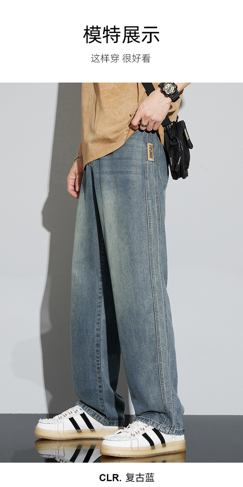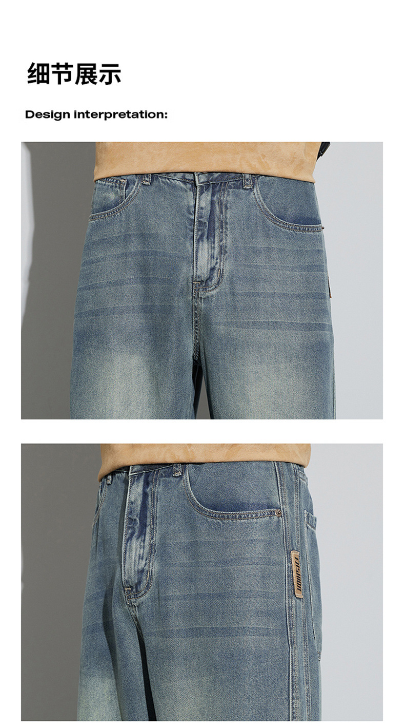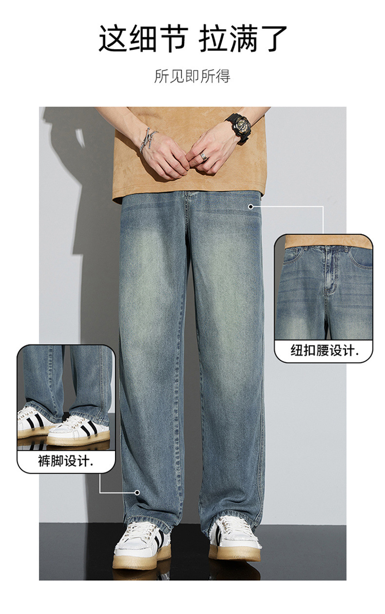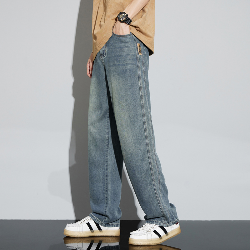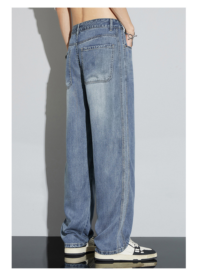 바지 남성 여름 아메리칸 스타일 레트로 남성 의류 텐셀 스트레치 남성 바지 얇은 걸레 바지 스트레이트 남성용 청바지스토어 가기