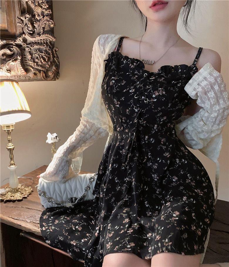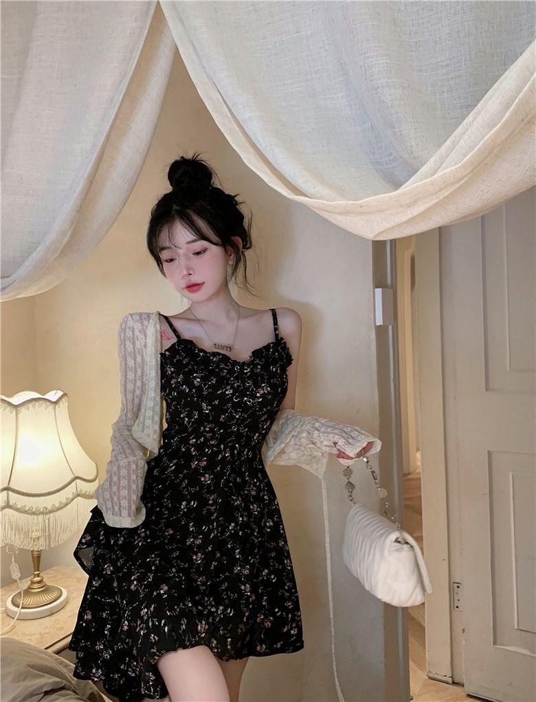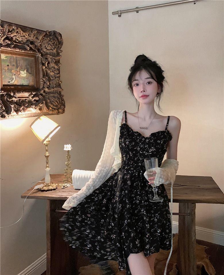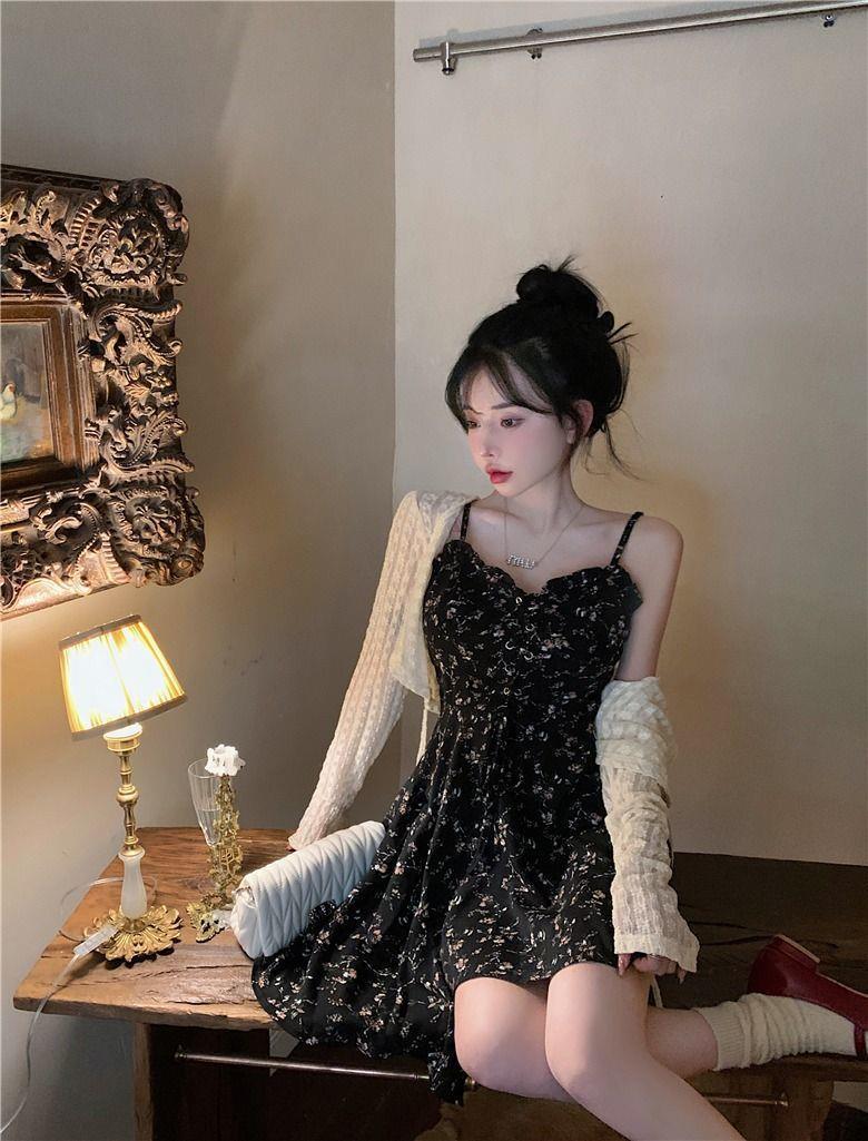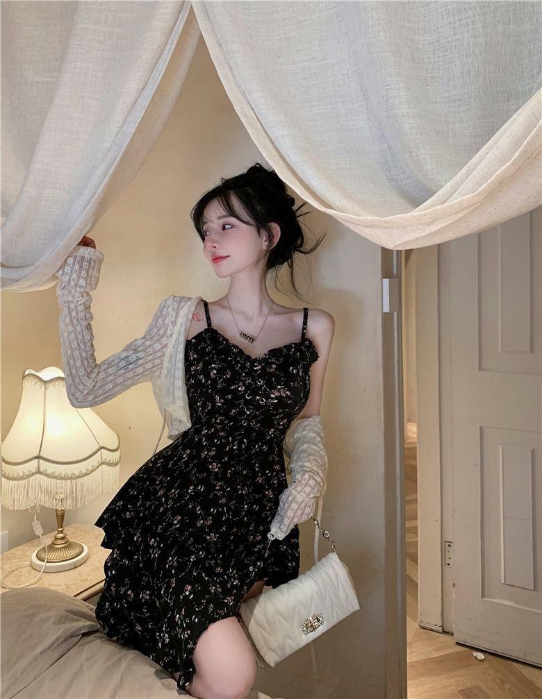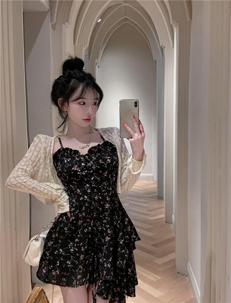 프랑스 틈새 불규칙한 꽃 슬립 스커트 원피스 여성 2024 년 새 여름 핫 걸 작은 하이 엔드 센스스토어 가기