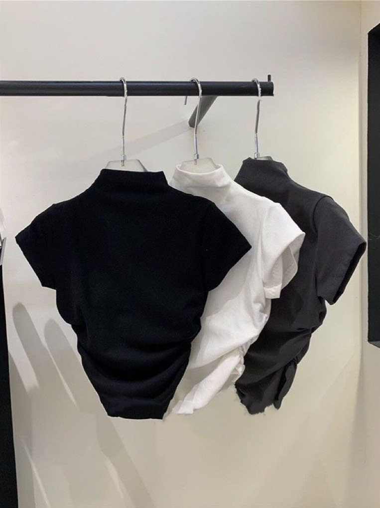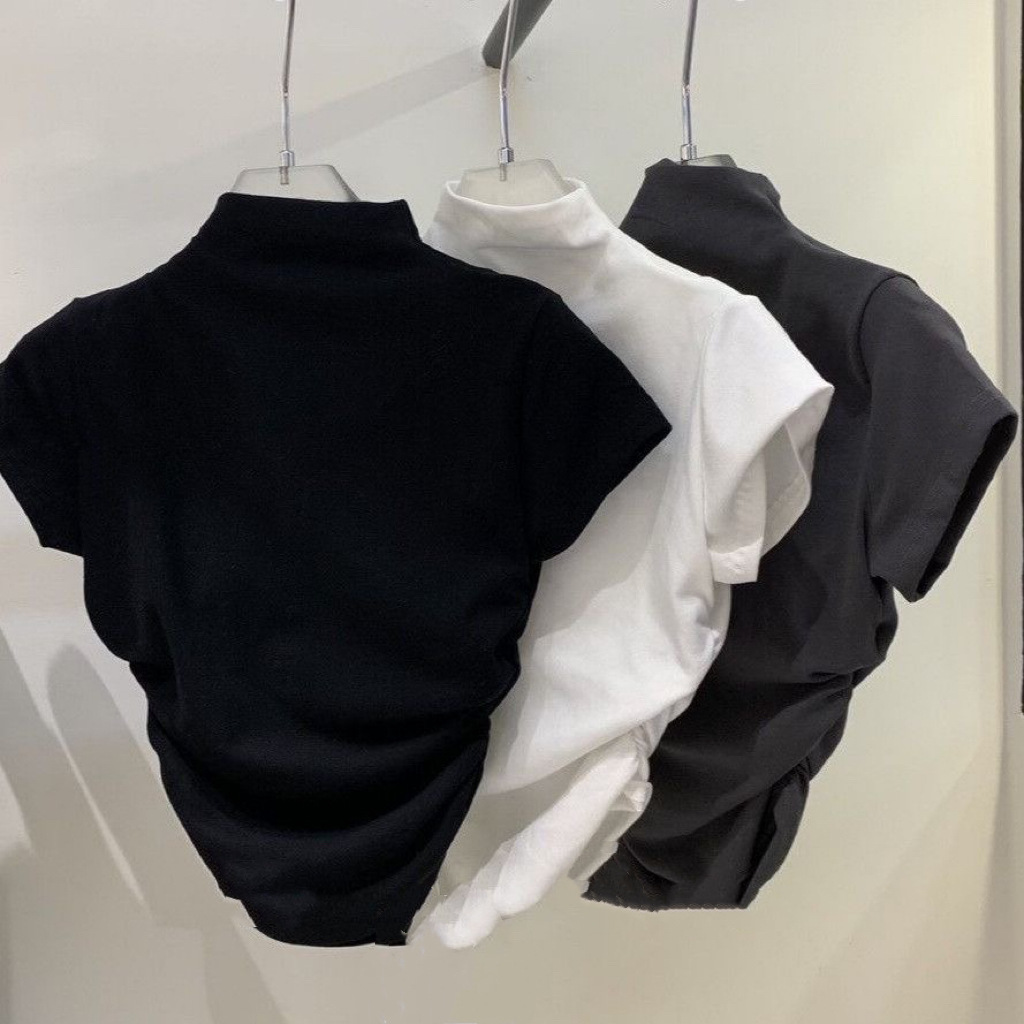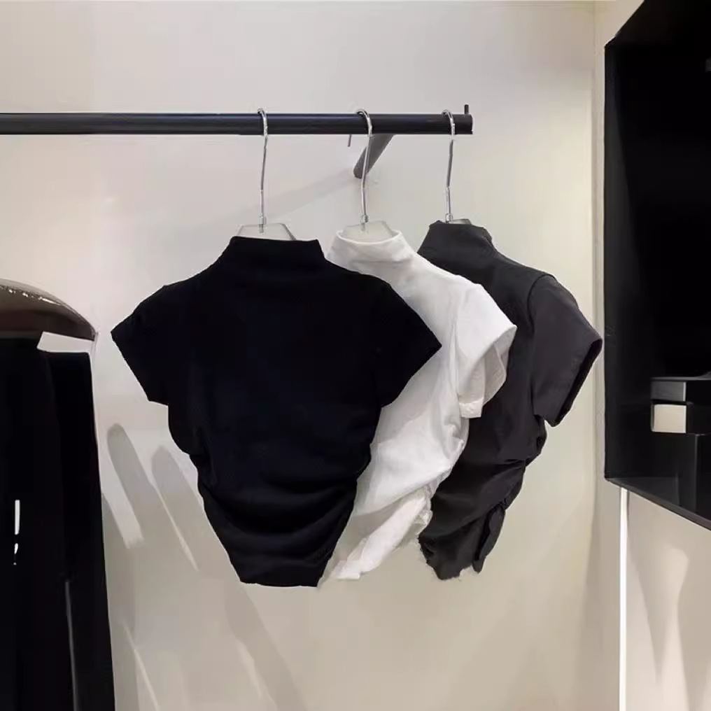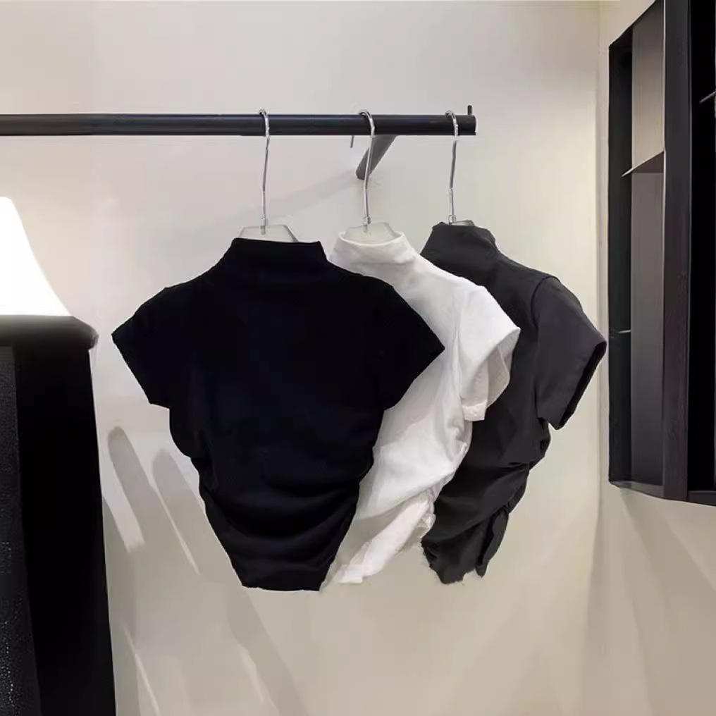여자 여름 새 반 높이 칼라 반팔 티셔츠 한국식 슬림끈 베이스 셔츠 민소매스토어 가기