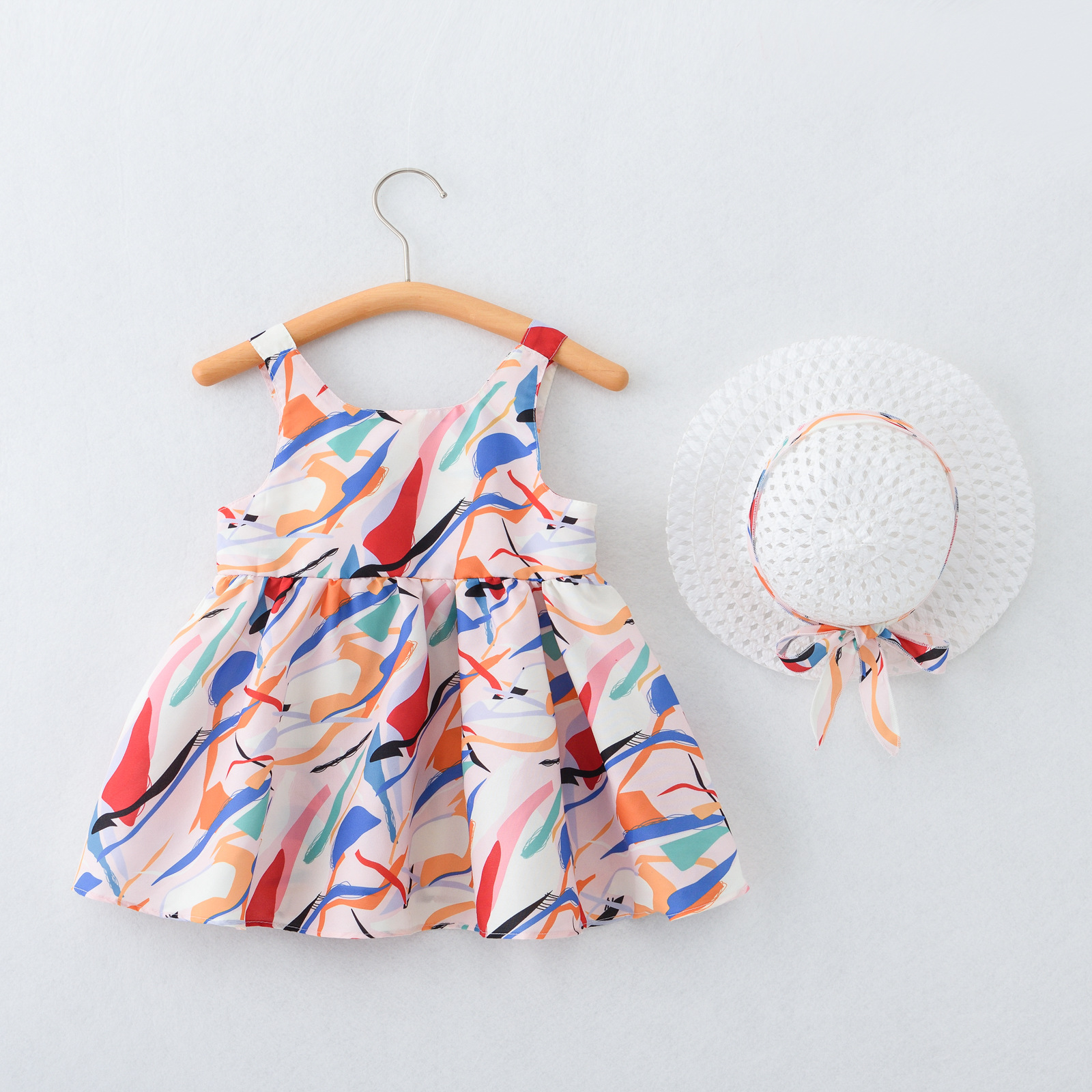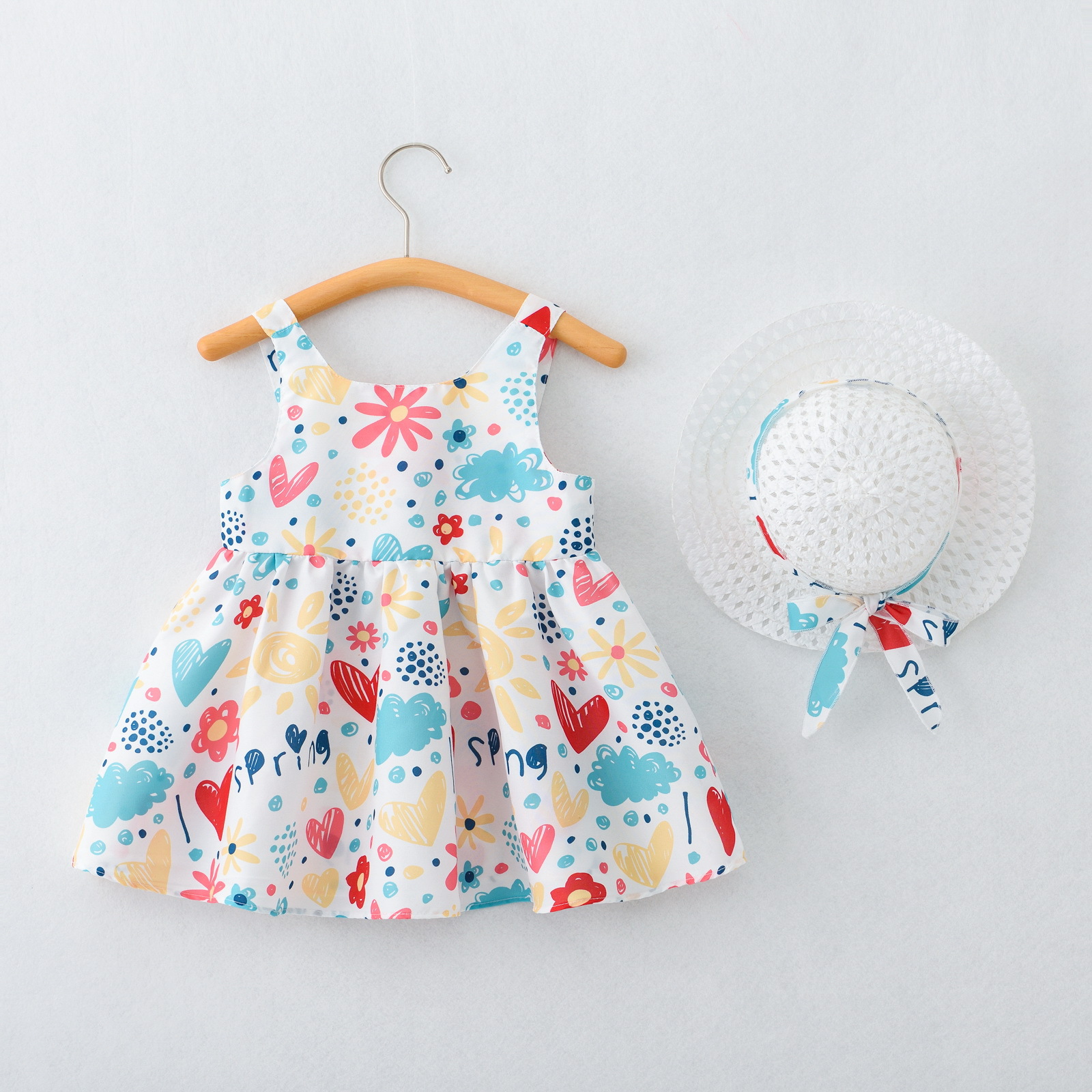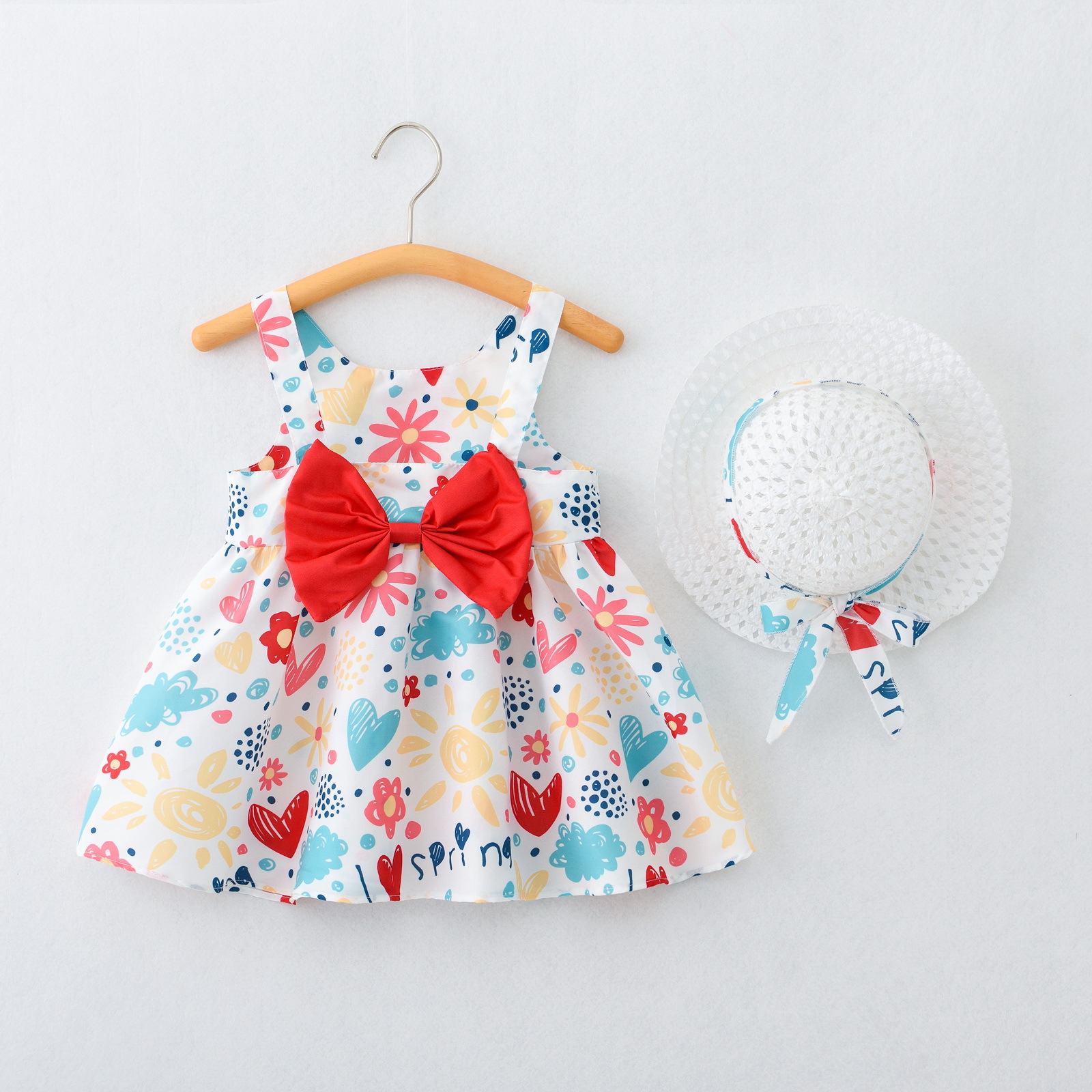 새로운 소녀 인쇄 외국식 원피스 아기 한국어 버전의 귀여운 활 후드 스트랩 투투 스커트 도매스토어 가기