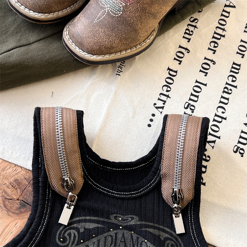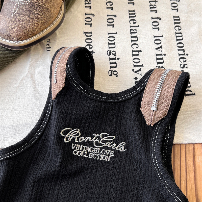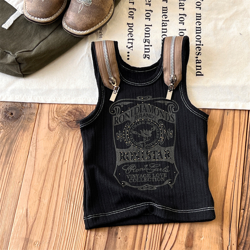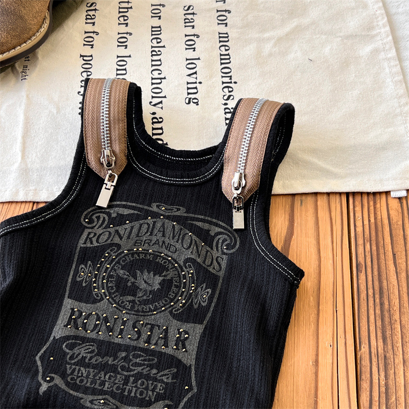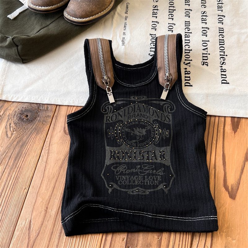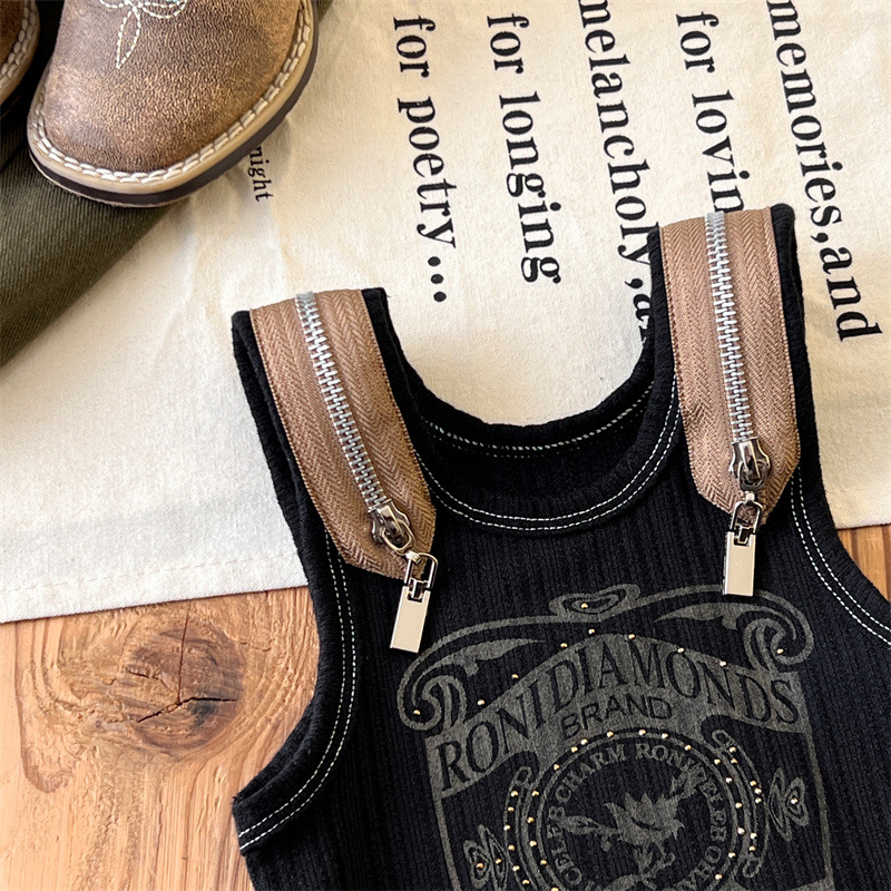 일본 아동복 중고 로니 여아 여름 슬링 핫걸 핫 다이아몬드 자수 조끼스토어 가기