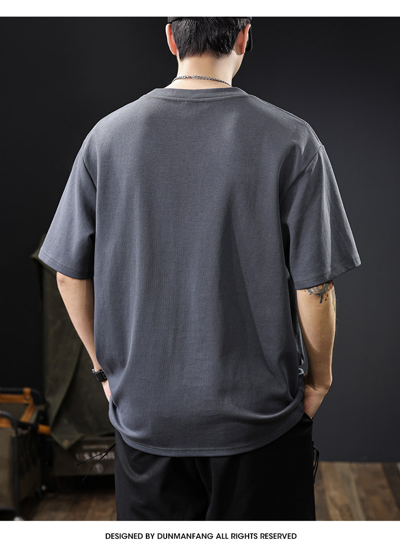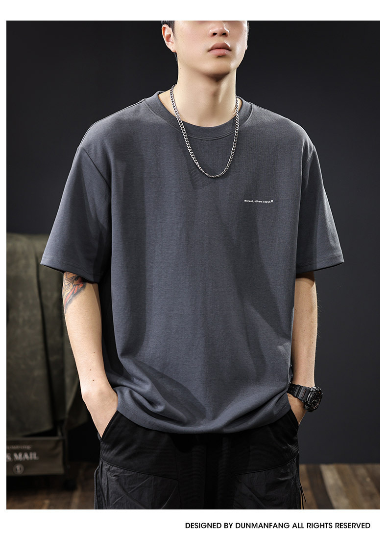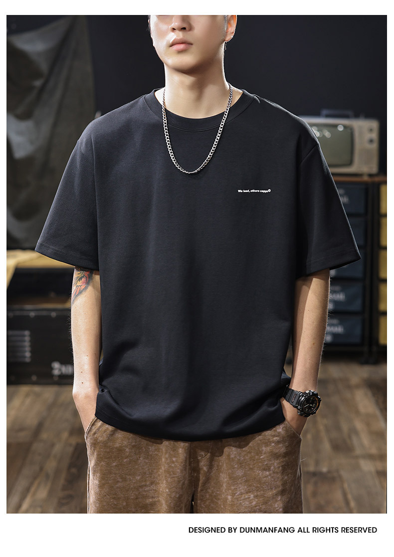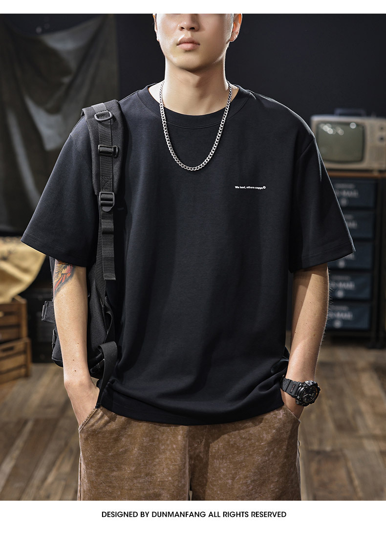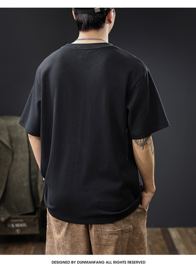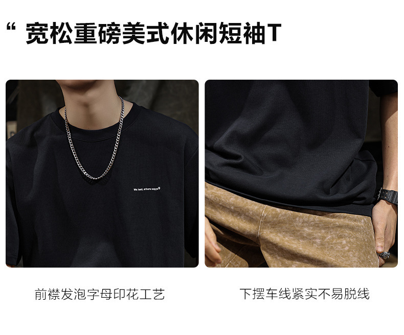 280g 무거운 두꺼운 미국 캐주얼 반팔 티셔츠 남자 여름 2024 새로운 패션 브랜드 루즈 조커 반소매 티셔츠
