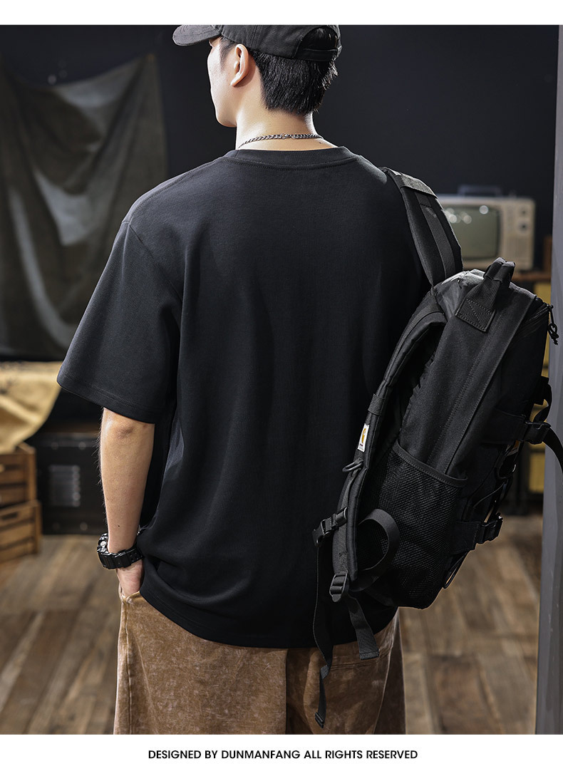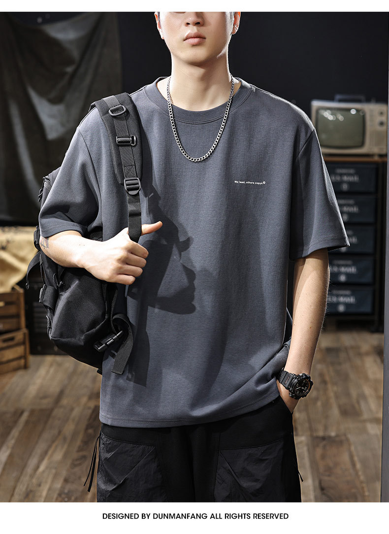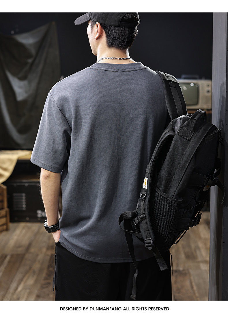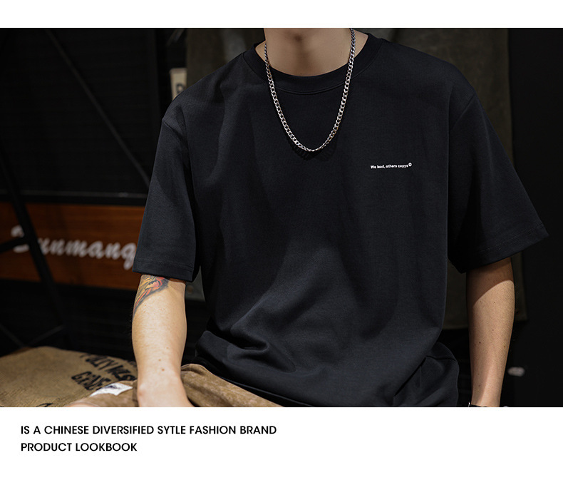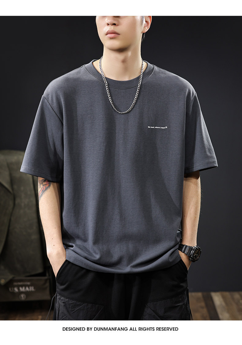 280g 무거운 두꺼운 미국 캐주얼 반팔 티셔츠 남자 여름 2024 새로운 패션 브랜드 루즈 조커 반소매 티셔츠