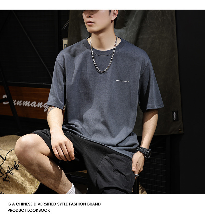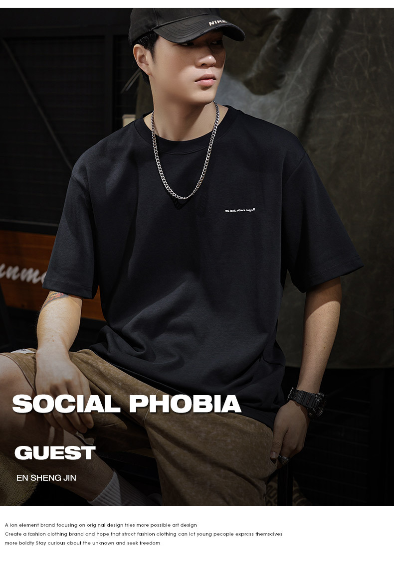 280g 무거운 두꺼운 미국 캐주얼 반팔 티셔츠 남자 여름 2024 새로운 패션 브랜드 루즈 조커 반소매 티셔츠스토어 가기
