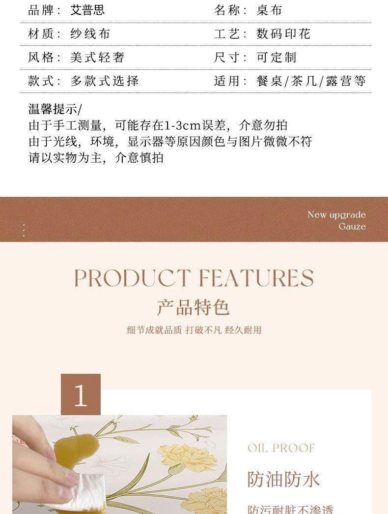 아메리칸 스타일 직사각형 식탁보 워시프리 방수 및 내유식 식탁 식탁보 라이트 럭셔리 고급 고급 안티 스케일링 및 단열 커피 테이블 커버 천스토어 가기