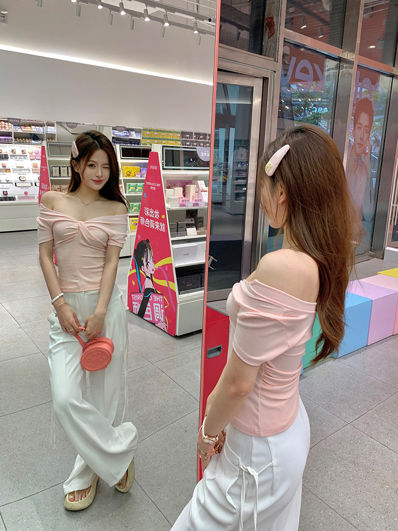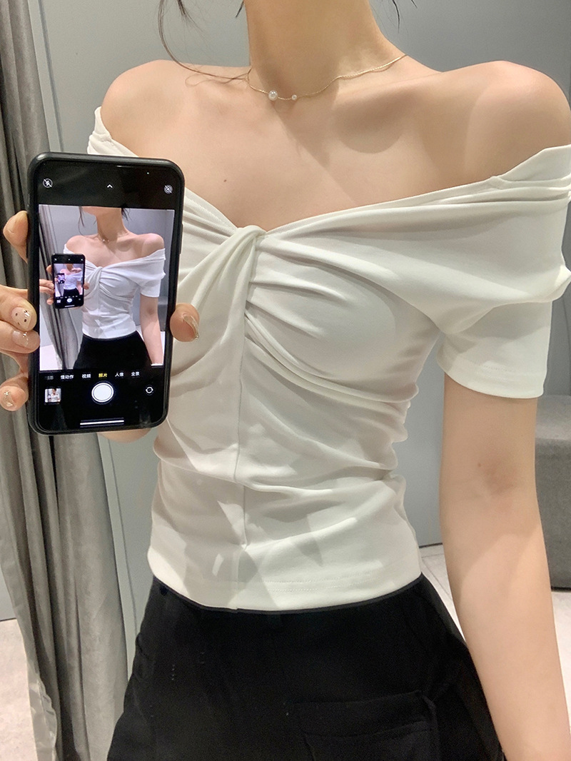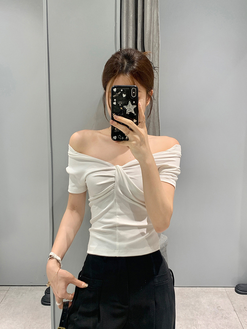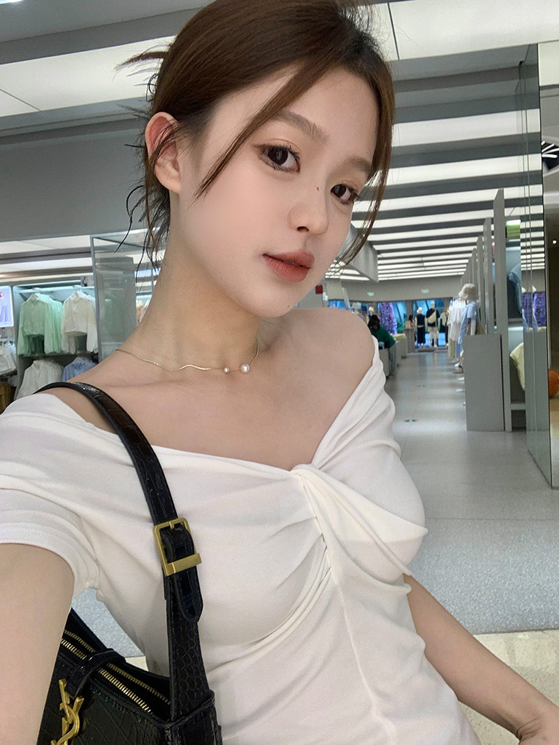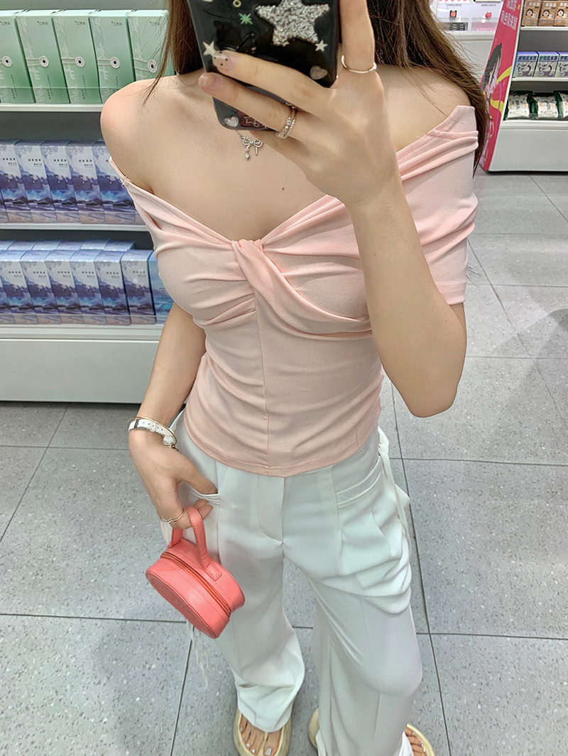 디자인 센스베이스 반팔 티셔츠 투웨어 슬림 핏 스파이스 걸스 올 매치 슬림 핏 이너 탑 여성용 오프 숄더