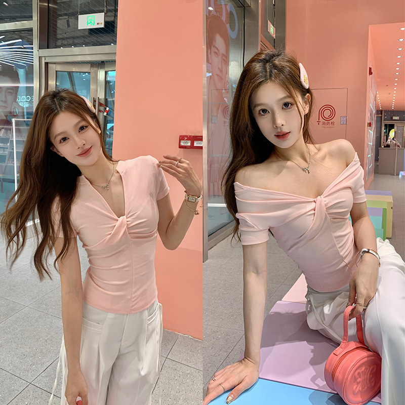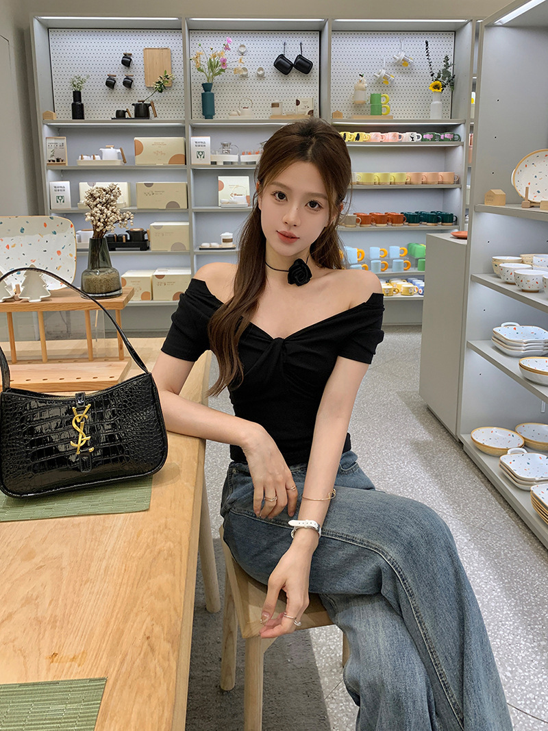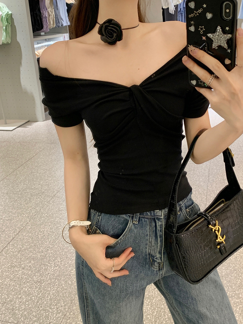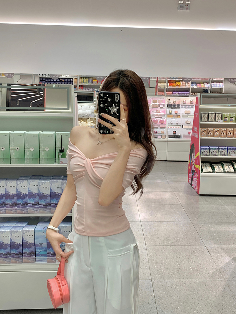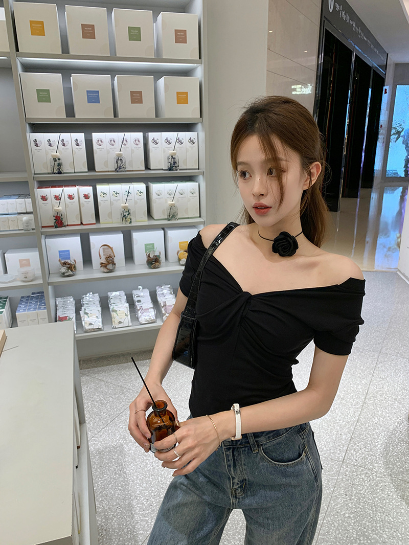 디자인 센스베이스 반팔 티셔츠 투웨어 슬림 핏 스파이스 걸스 올 매치 슬림 핏 이너 탑 여성용 오프 숄더스토어 가기