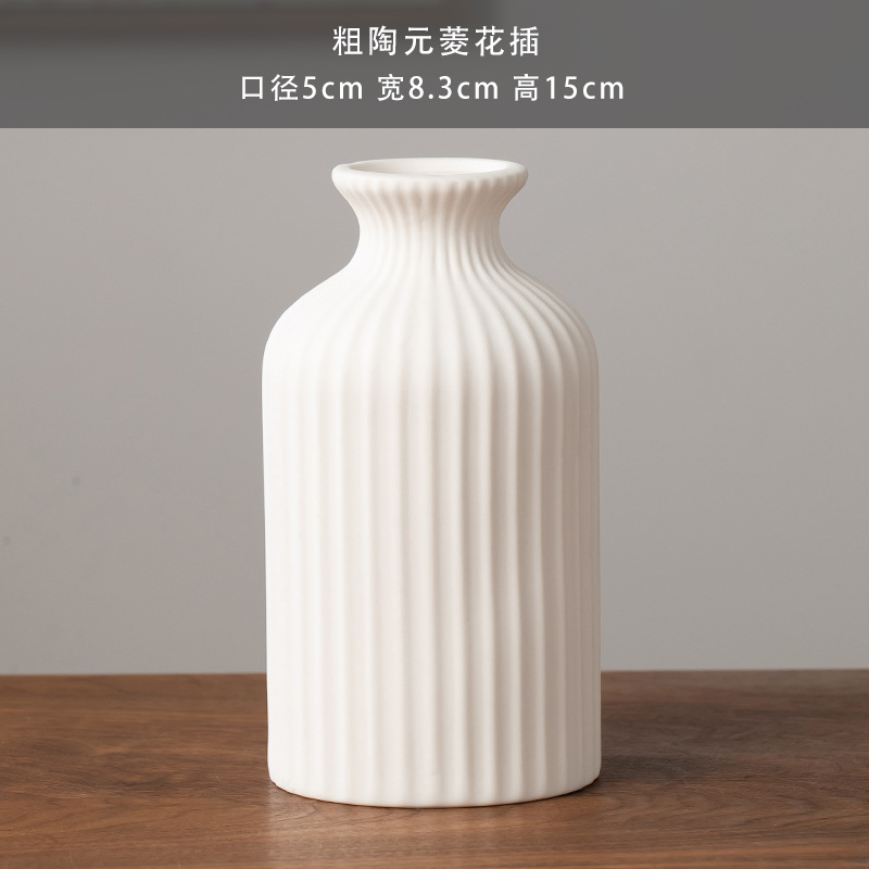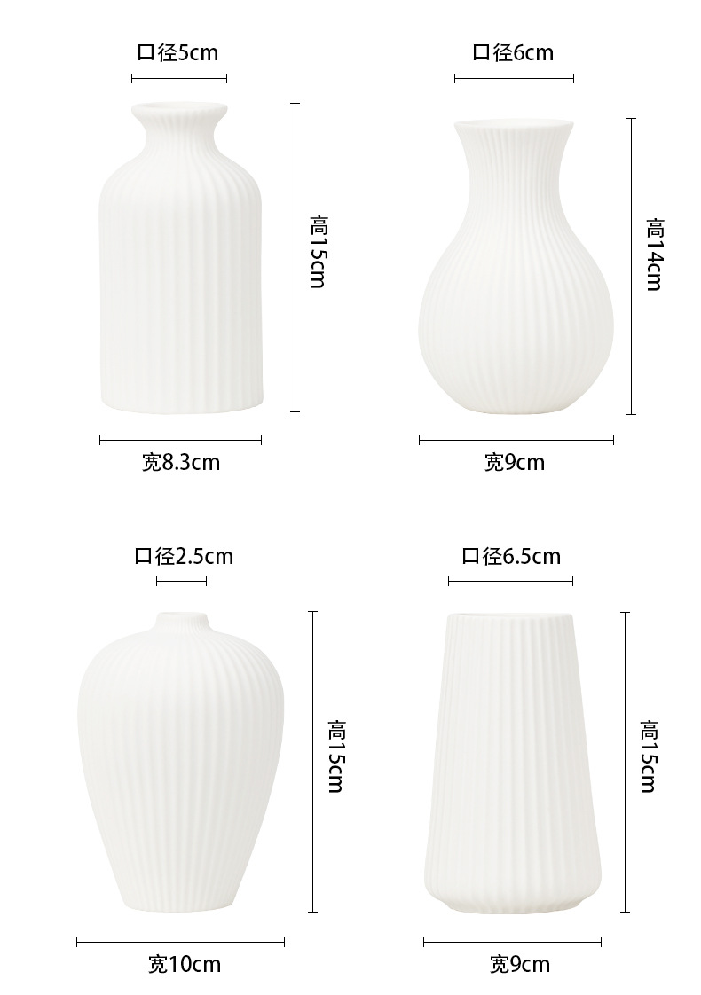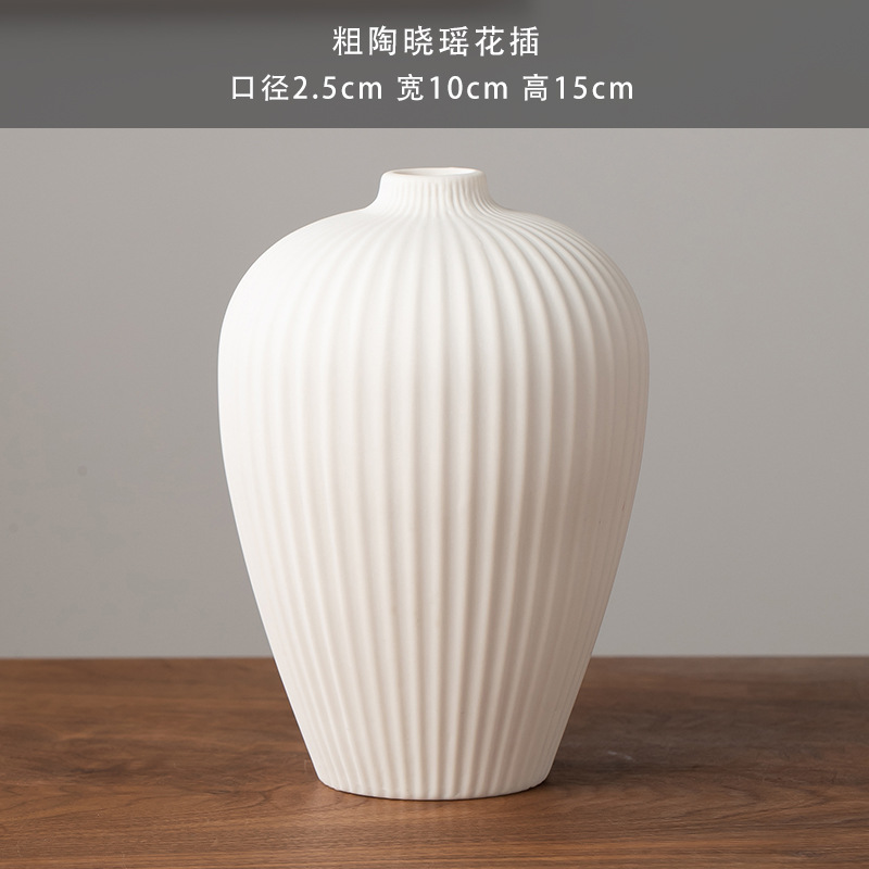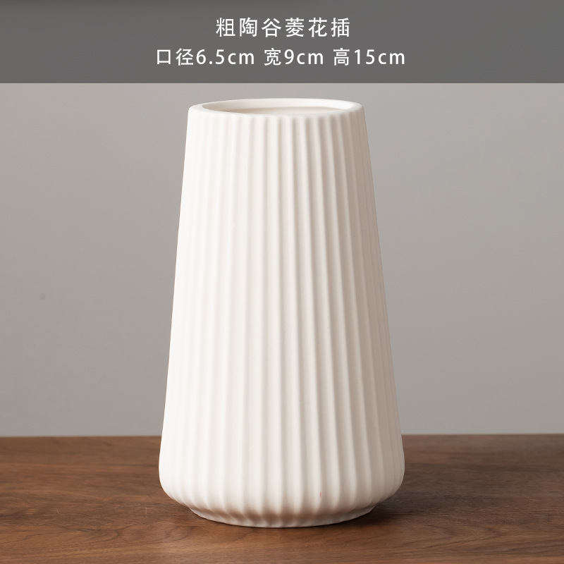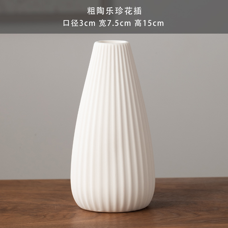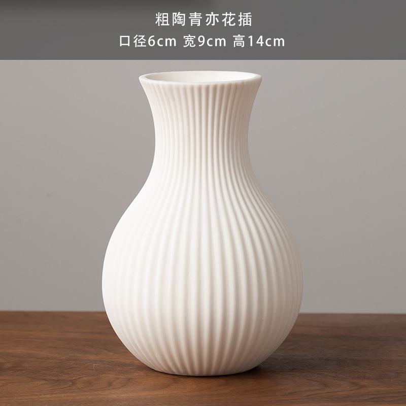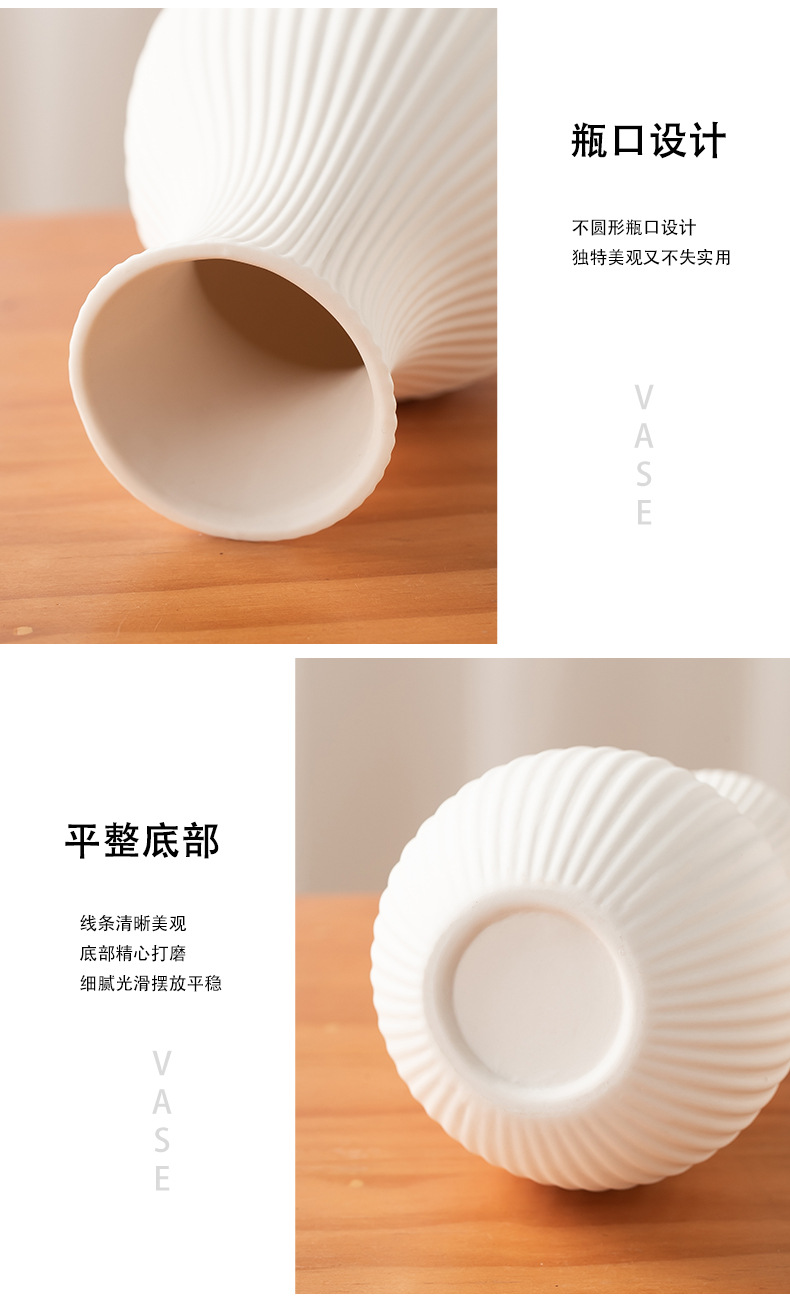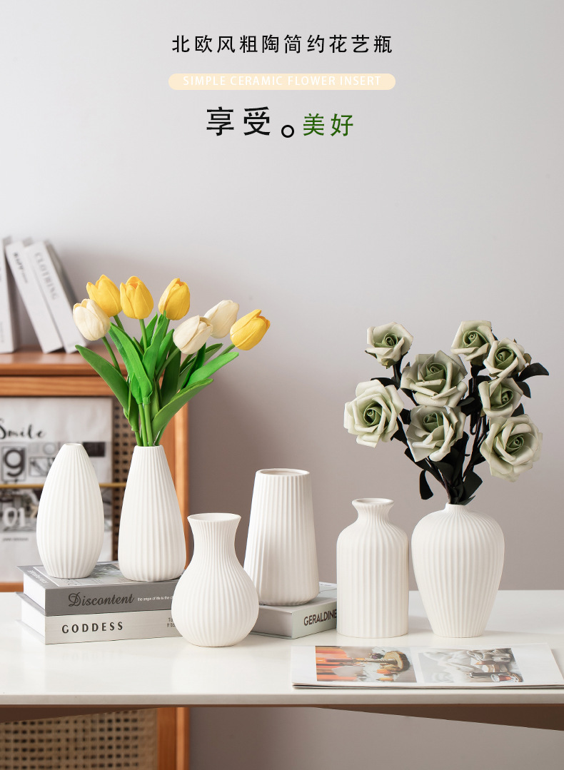 Nordic Ins 세라믹 꽃병 화이트 프로스트 스트라이프 플로레 간단한 홈 거실 꽃 예술 장식