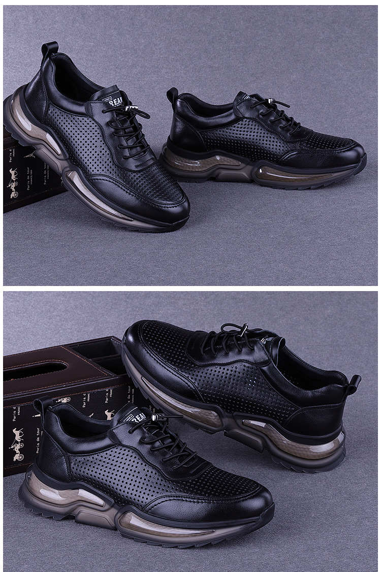 대외 무역 봄 남성 신발 새로운 스포츠 가죽 신발 남성용 중공 캐주얼 신발 탑 레이어 소 가죽 천공 통기성 남성 여행 신발스토어 가기