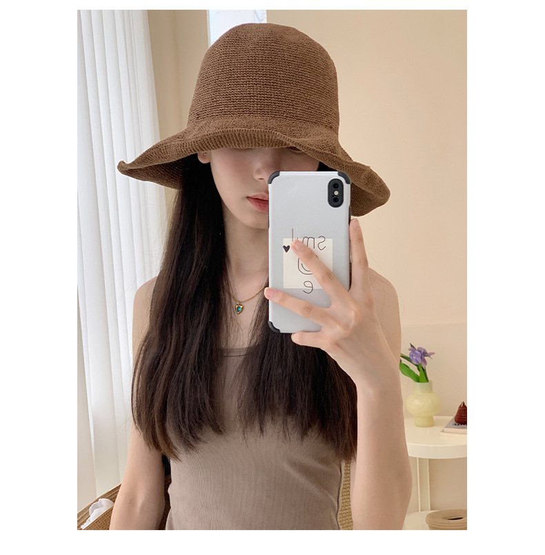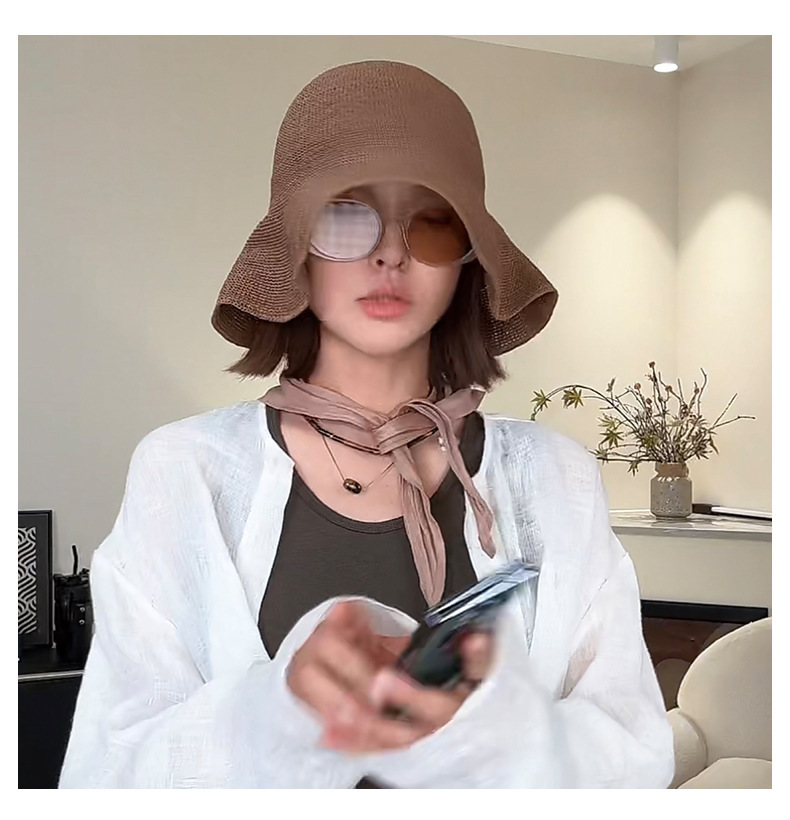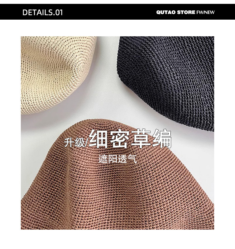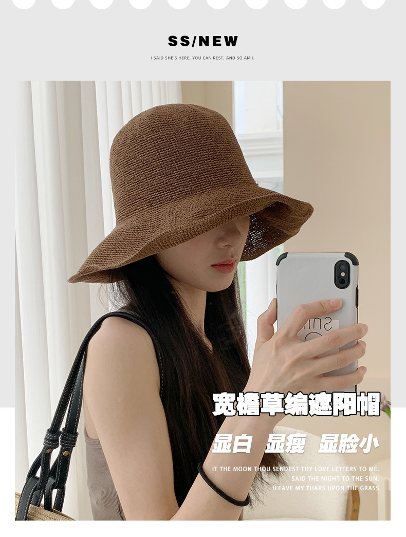 2026 신상품 심플하고 다용도로 활용 가능한 얇은 바늘뜨기 종이로 짠 자외선 차단 부드러운 밀짚모자 어부모자 해변모자 여성용스토어 가기