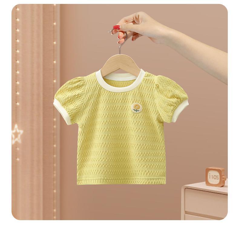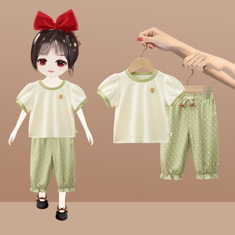 소녀 세트 2024 새로운 여름 어린이 세련된 반팔 바지 투피스 세트 아기 소녀의 여름 옷