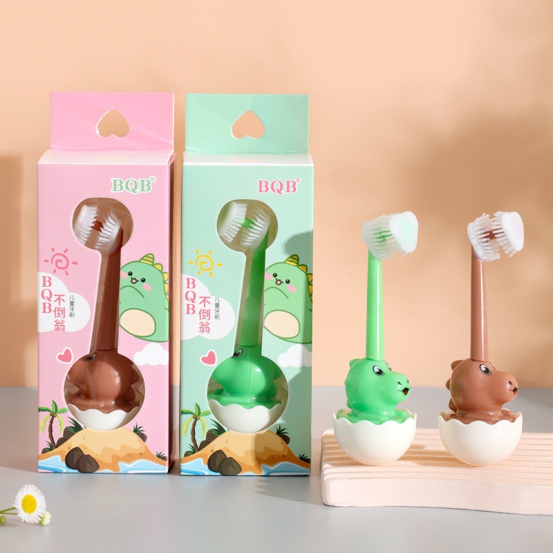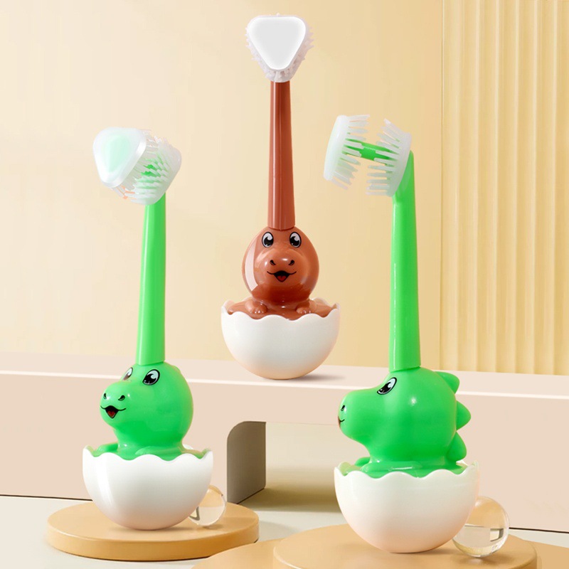 공룡 텀블러 칫솔 3 면 칫솔질 아기 귀여운 만화 창조적 인 칫솔 부드러운 머리 도매스토어 가기