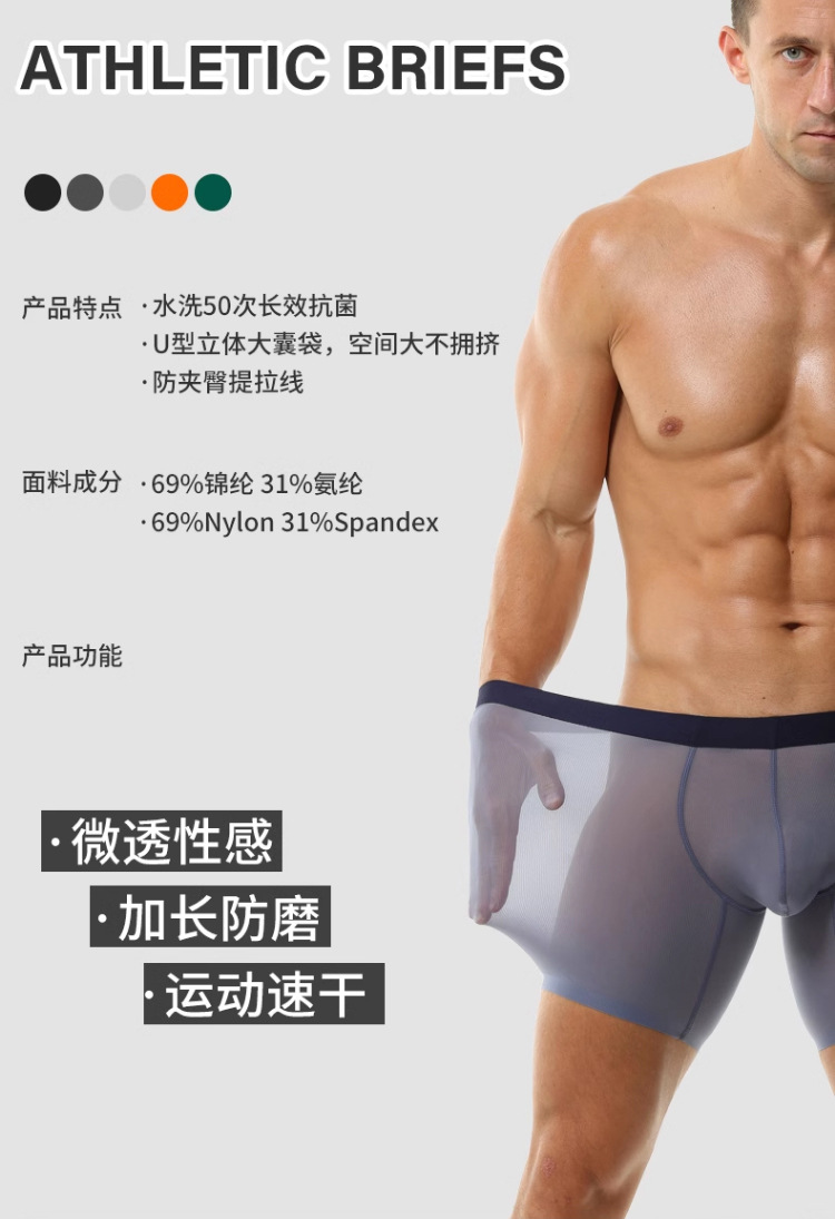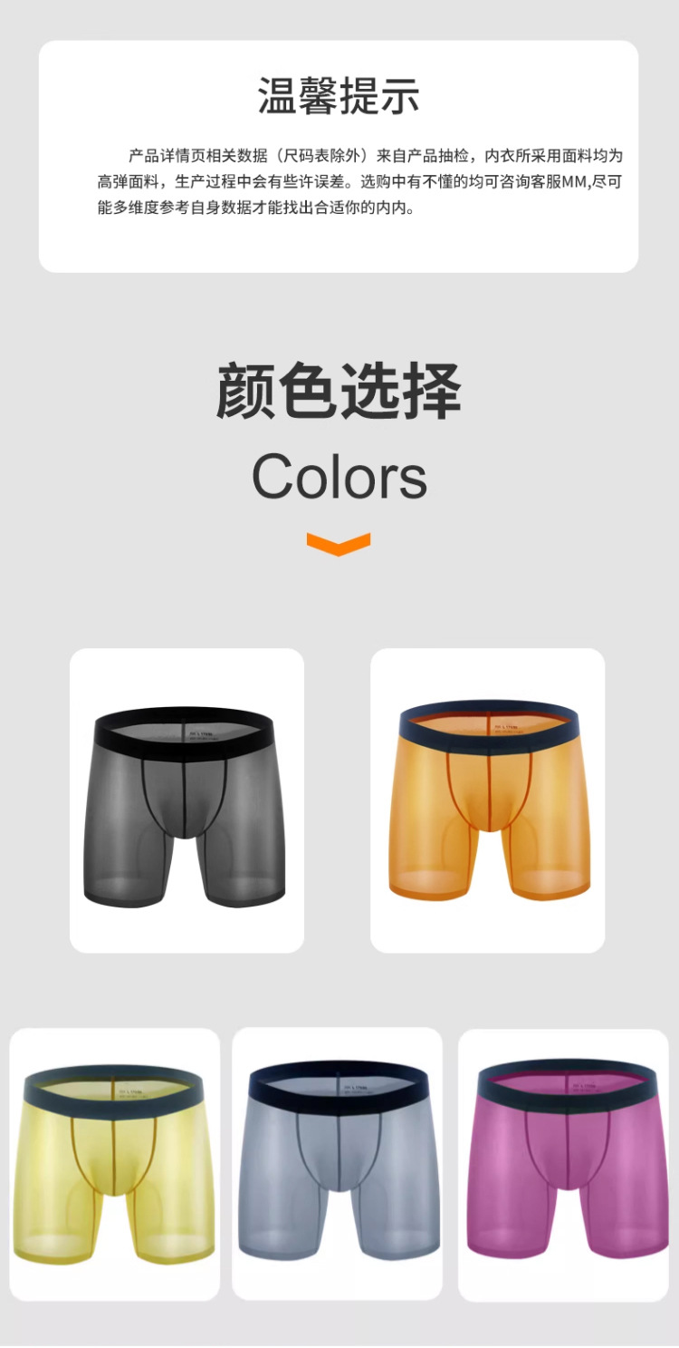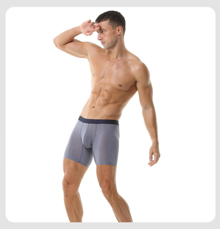 반투명 리브 아이스 실크 박스 남성용 얇은 투명 높은 탄성 비 마킹 속옷 긴 모조 연삭 다리 박서 플러스 사이즈스토어 가기