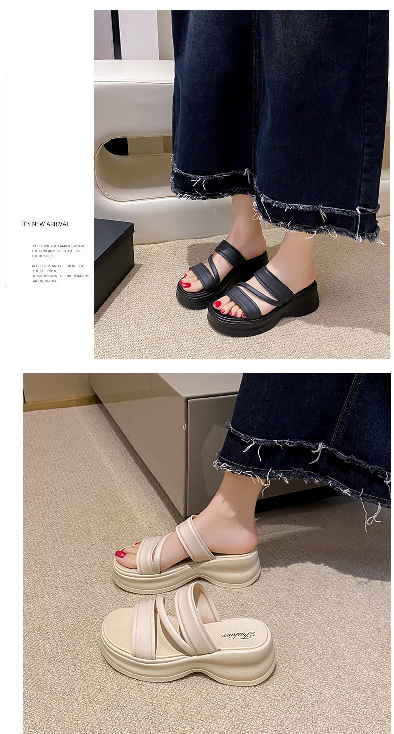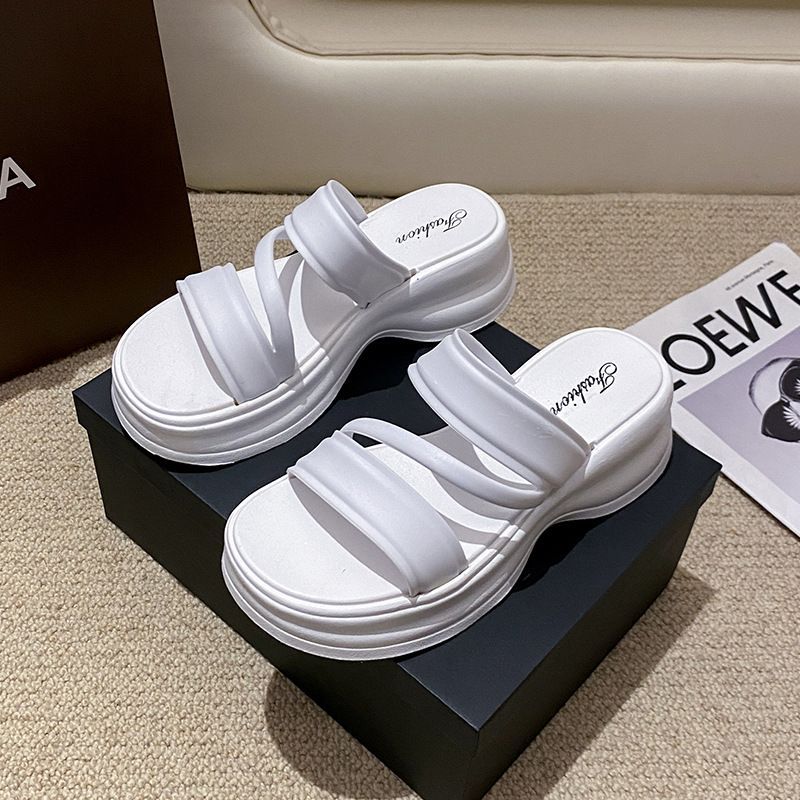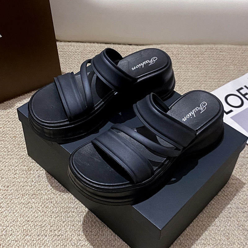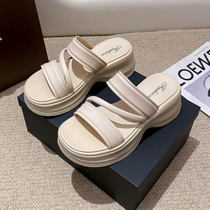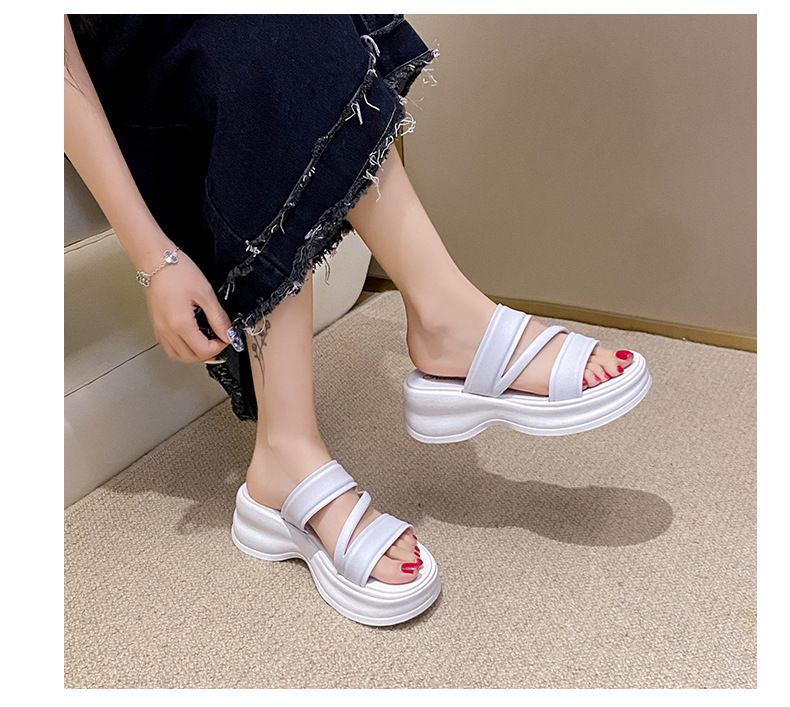 2024 플랫폼 샌들 및 슬리퍼 여름 여성 외부 착용 미끄럼 방지 캐주얼 올 매치 하이힐 높이 증가 샌들 여성용 신발