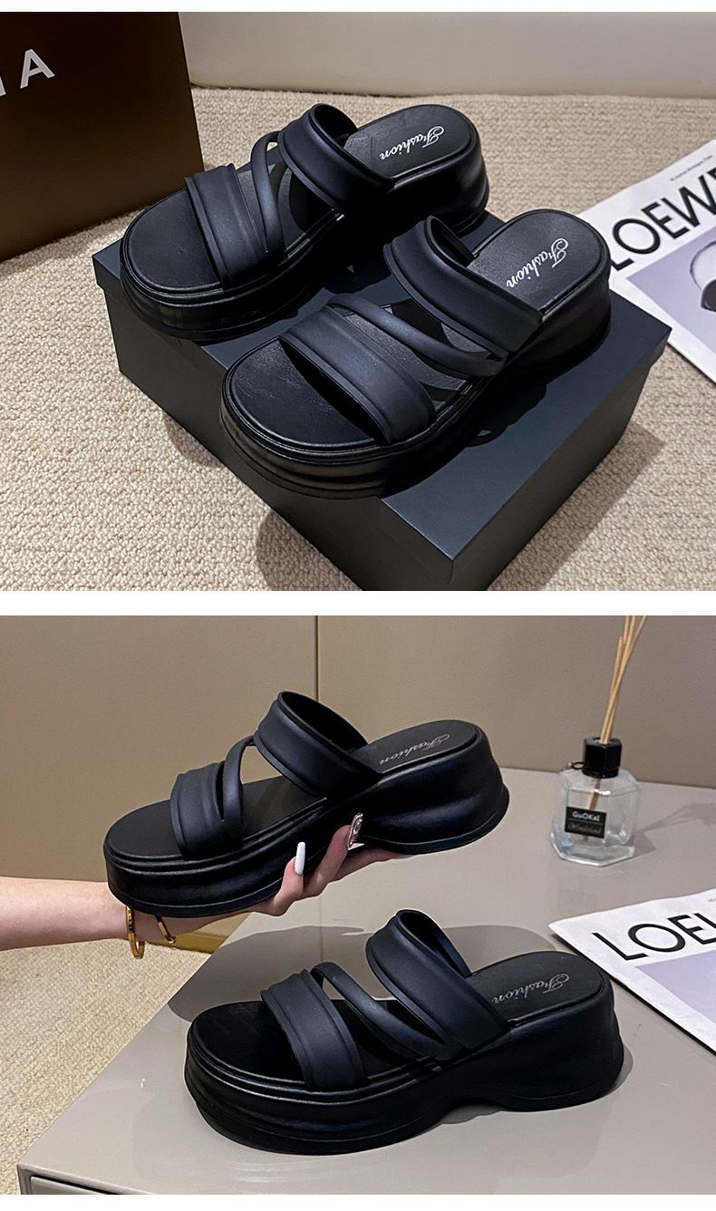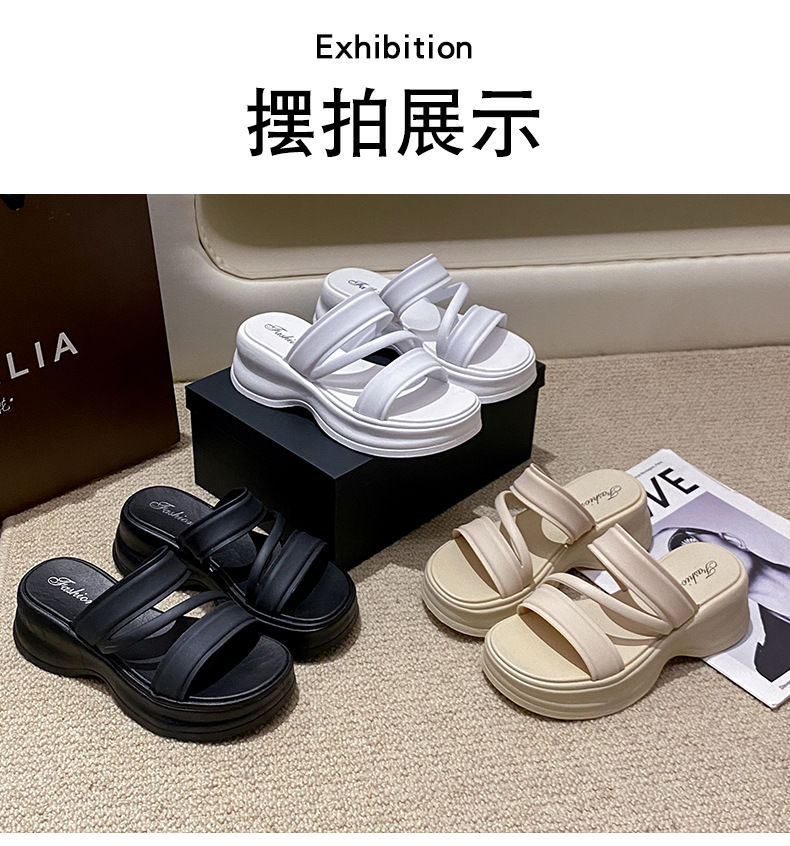 2024 플랫폼 샌들 및 슬리퍼 여름 여성 외부 착용 미끄럼 방지 캐주얼 올 매치 하이힐 높이 증가 샌들 여성용 신발스토어 가기