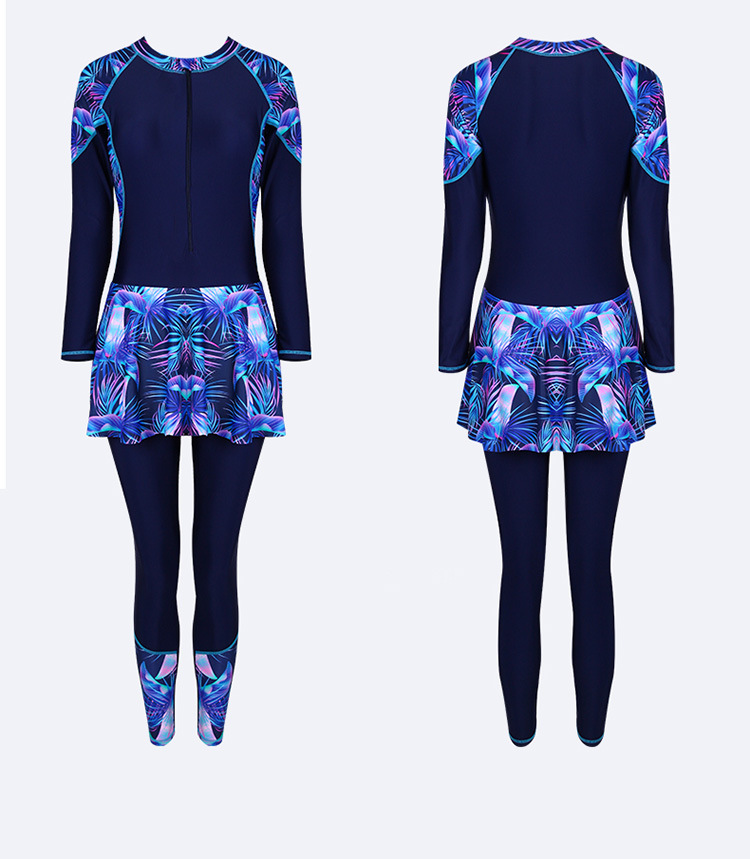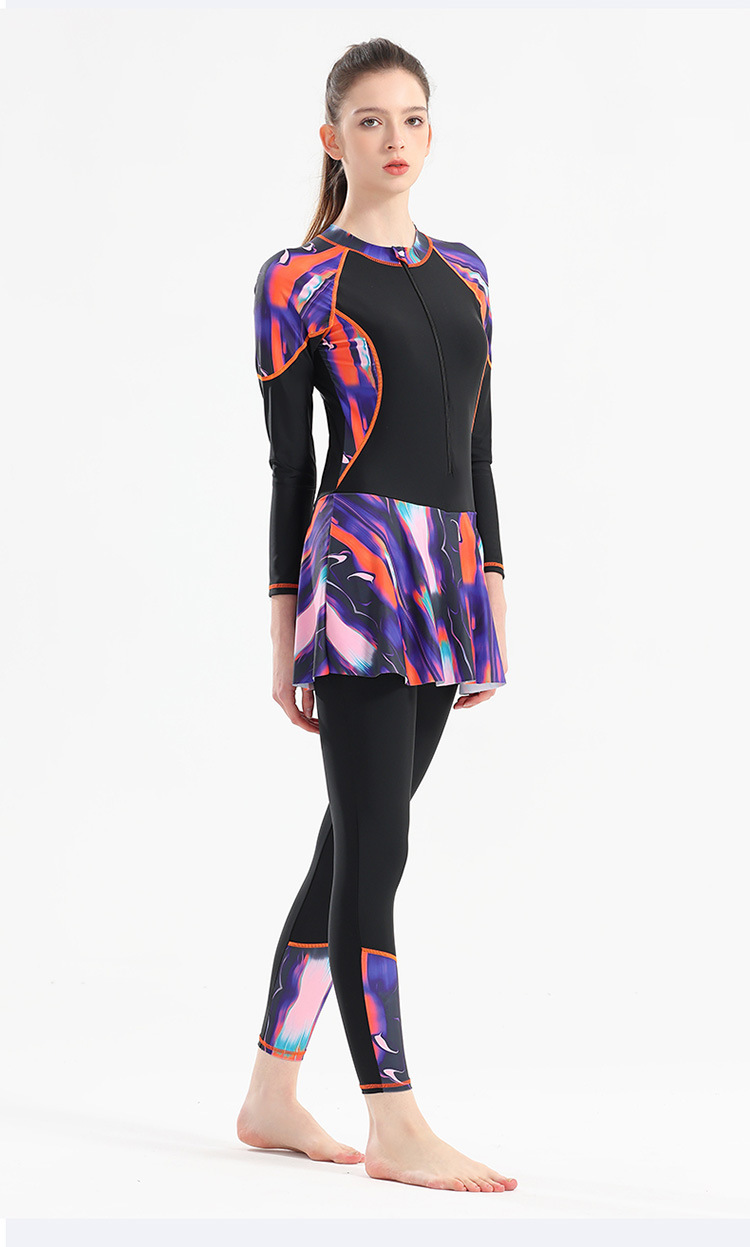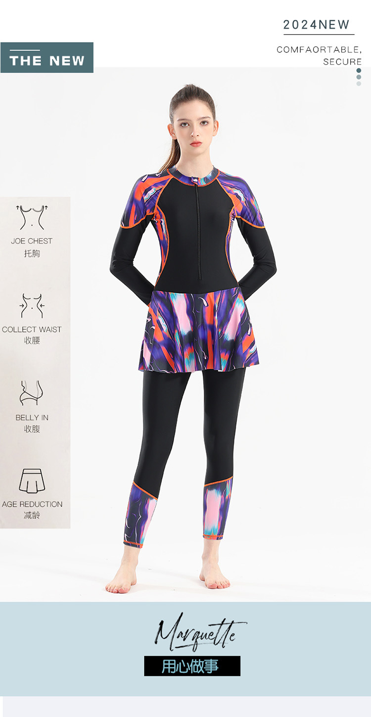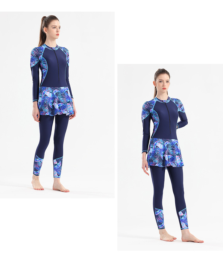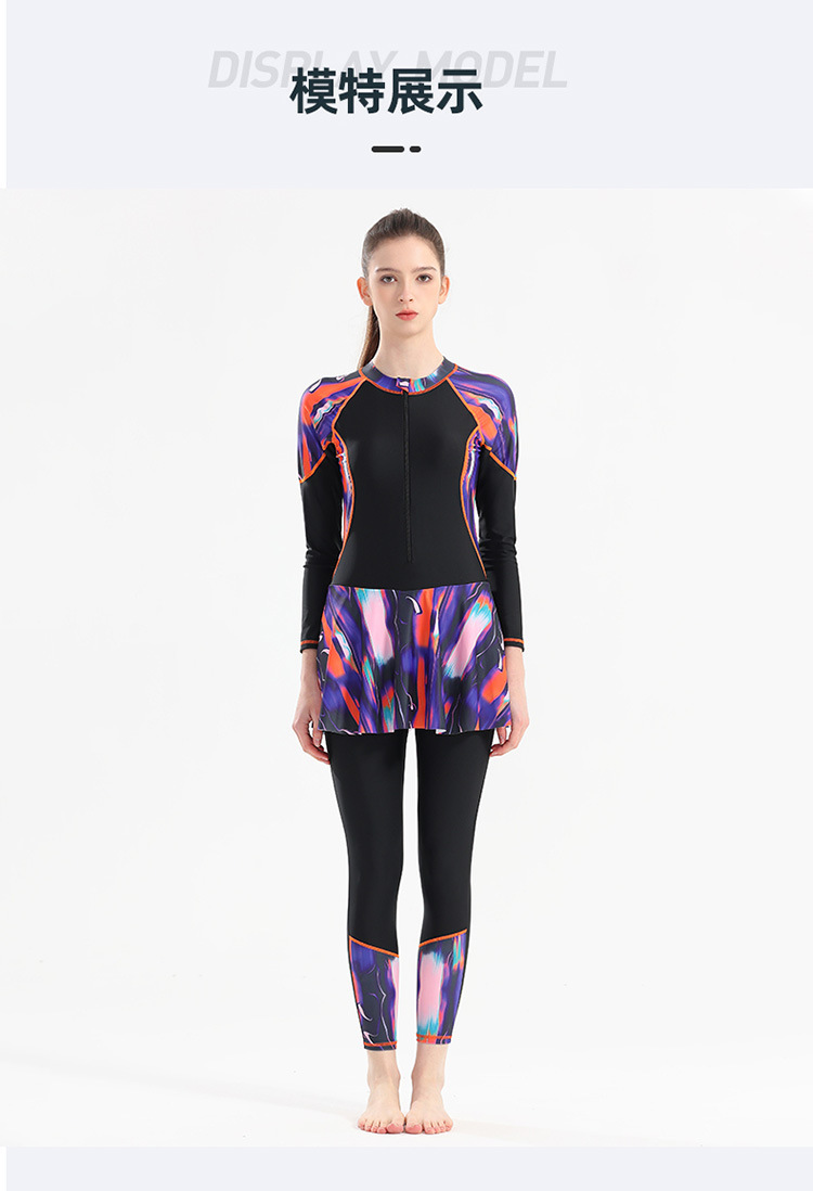 여성용 도매 다이빙 슈트, 긴팔, 긴 바지, 스커트, 전신 자외선 차단, 보수적인 수영복, 배를 커버하고 날씬해 보이는 해파리 슈트 수영복스토어 가기