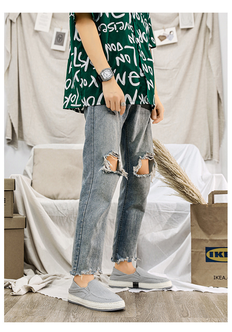 캔버스 남성 신발 여름 캐주얼 오래 된 베이징 리넨 천 신발 남자 게으른 슬립 어부 유행 신발 2024 새로운 도착스토어 가기