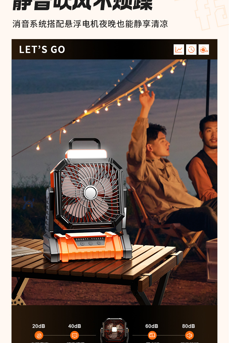 • 하이 에디션/활기찬 오렌지-캠핑 팬 [LED 조명이있는 원격 제어 흔들리는 헤드]]