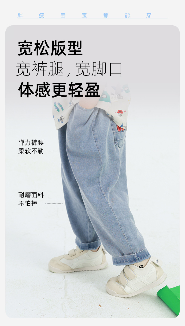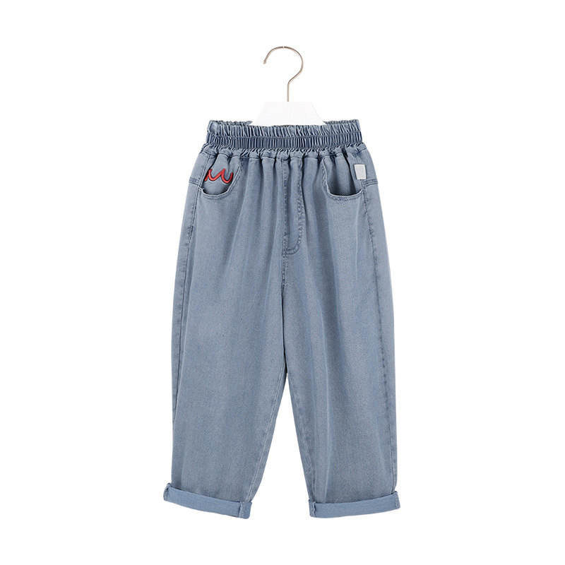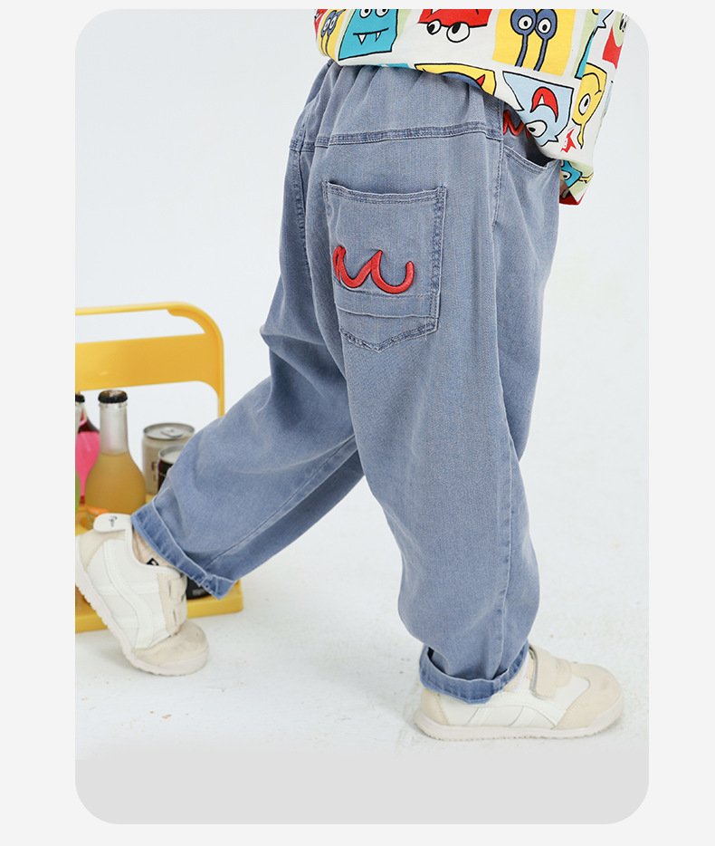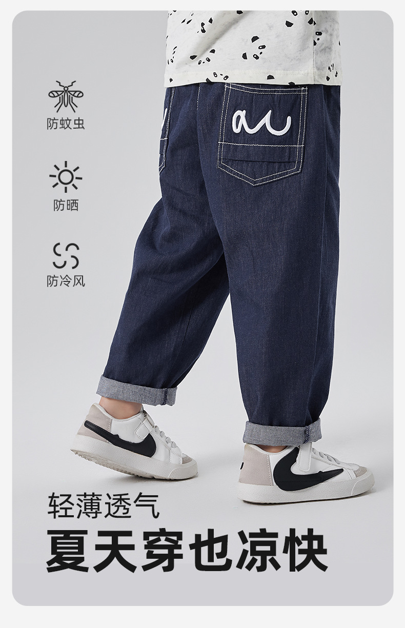 남아 여름 바지 어린이 모기 방지 바지 여름 얇은 모델 2025 신상 아기 빠른 건조 바지 중소형 어린이용 청바지