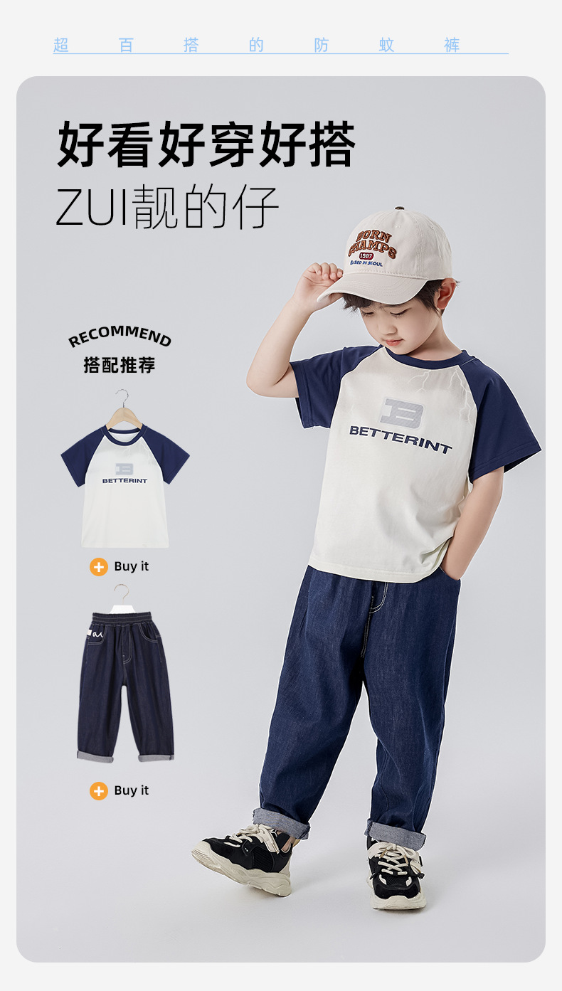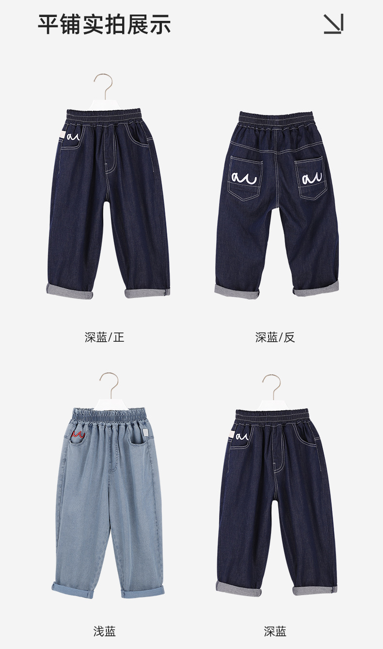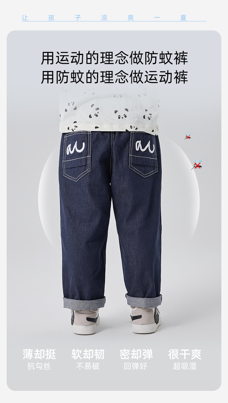 남아 여름 바지 어린이 모기 방지 바지 여름 얇은 모델 2025 신상 아기 빠른 건조 바지 중소형 어린이용 청바지스토어 가기