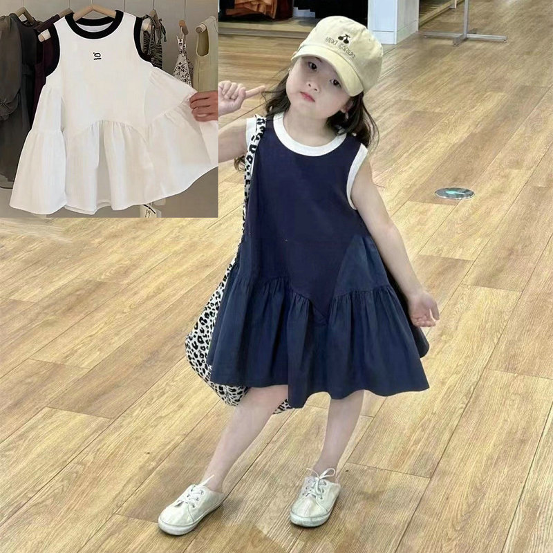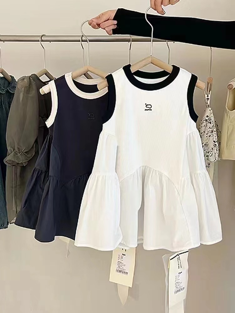 여자 스커트 대비 색 스포츠 조끼 드레스 2025 여름 새로운 스타일 대외 무역 아동 의류 3-8 세