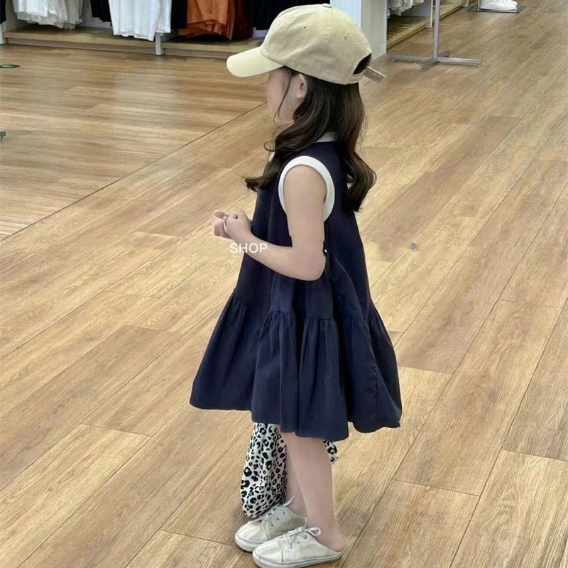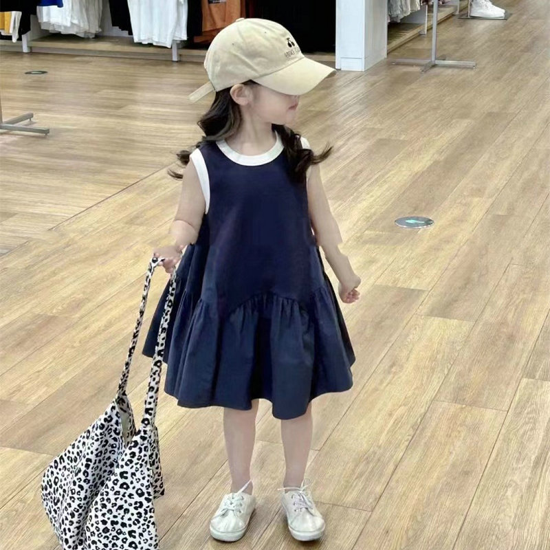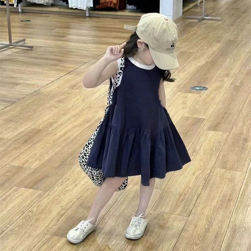 여자 스커트 대비 색 스포츠 조끼 드레스 2025 여름 새로운 스타일 대외 무역 아동 의류 3-8 세스토어 가기