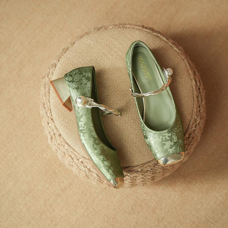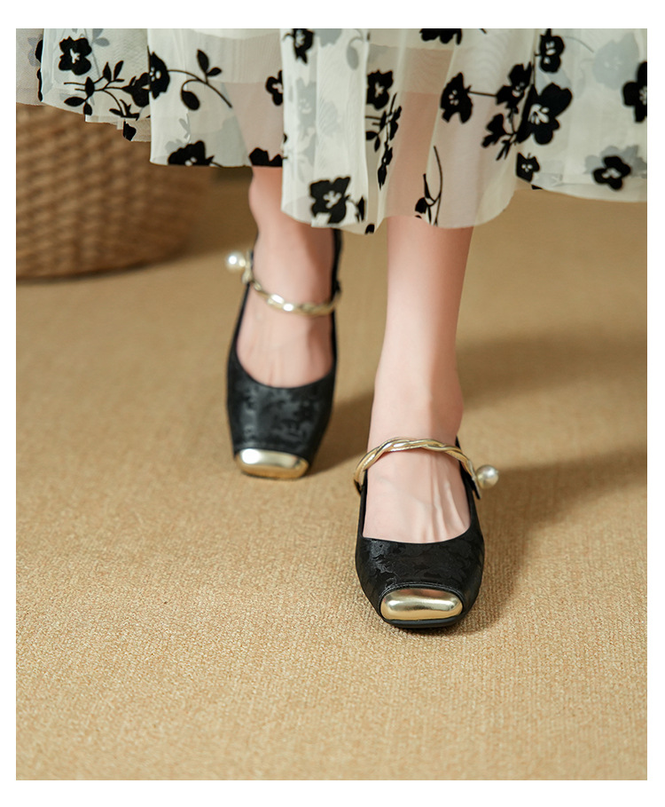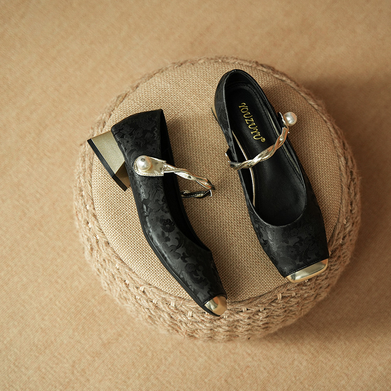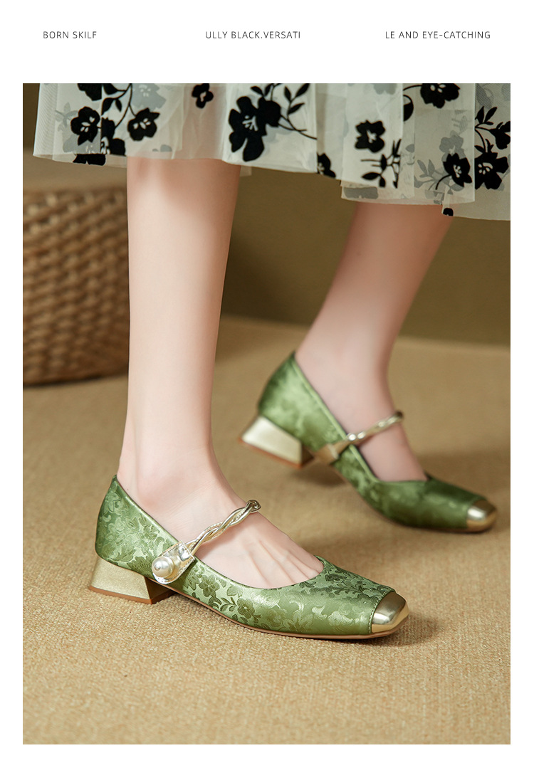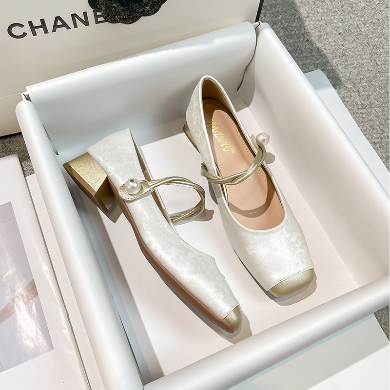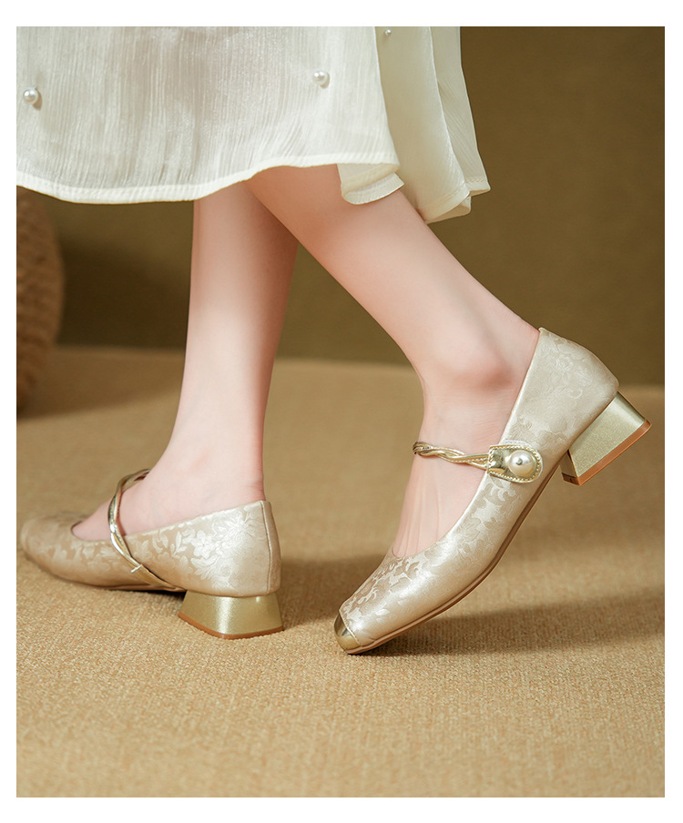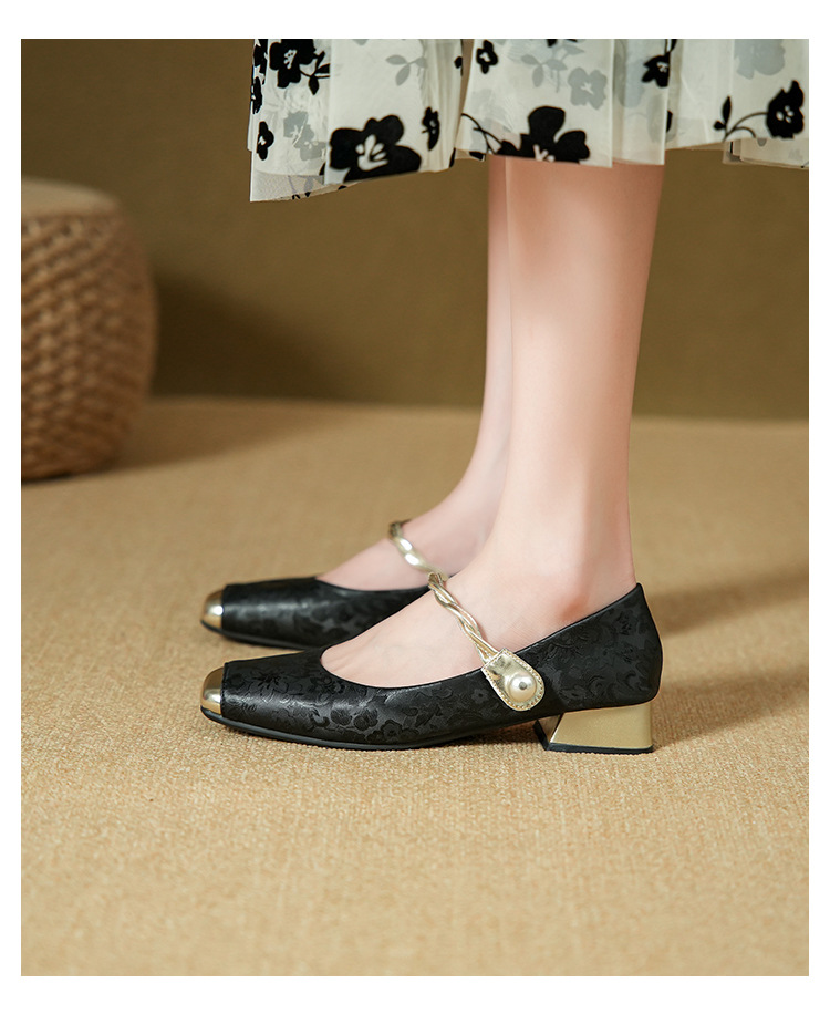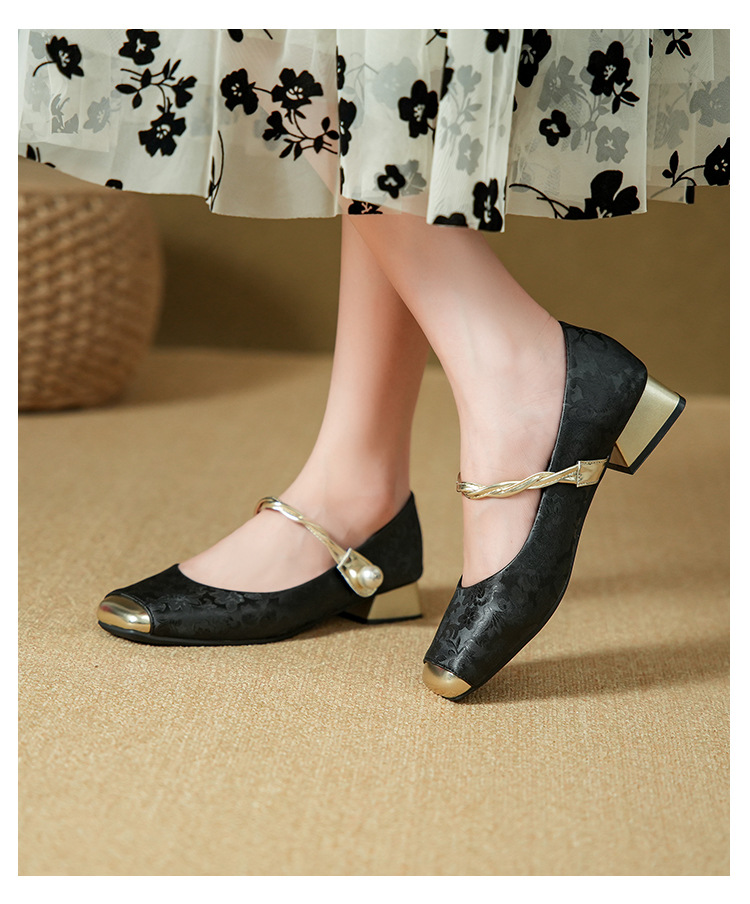 해외 무역 전용 메리제인 여성용 2025 겨울 신상 중국풍 사각코 굵은 굽 스트랩 얕은 굽 여성용 신발스토어 가기