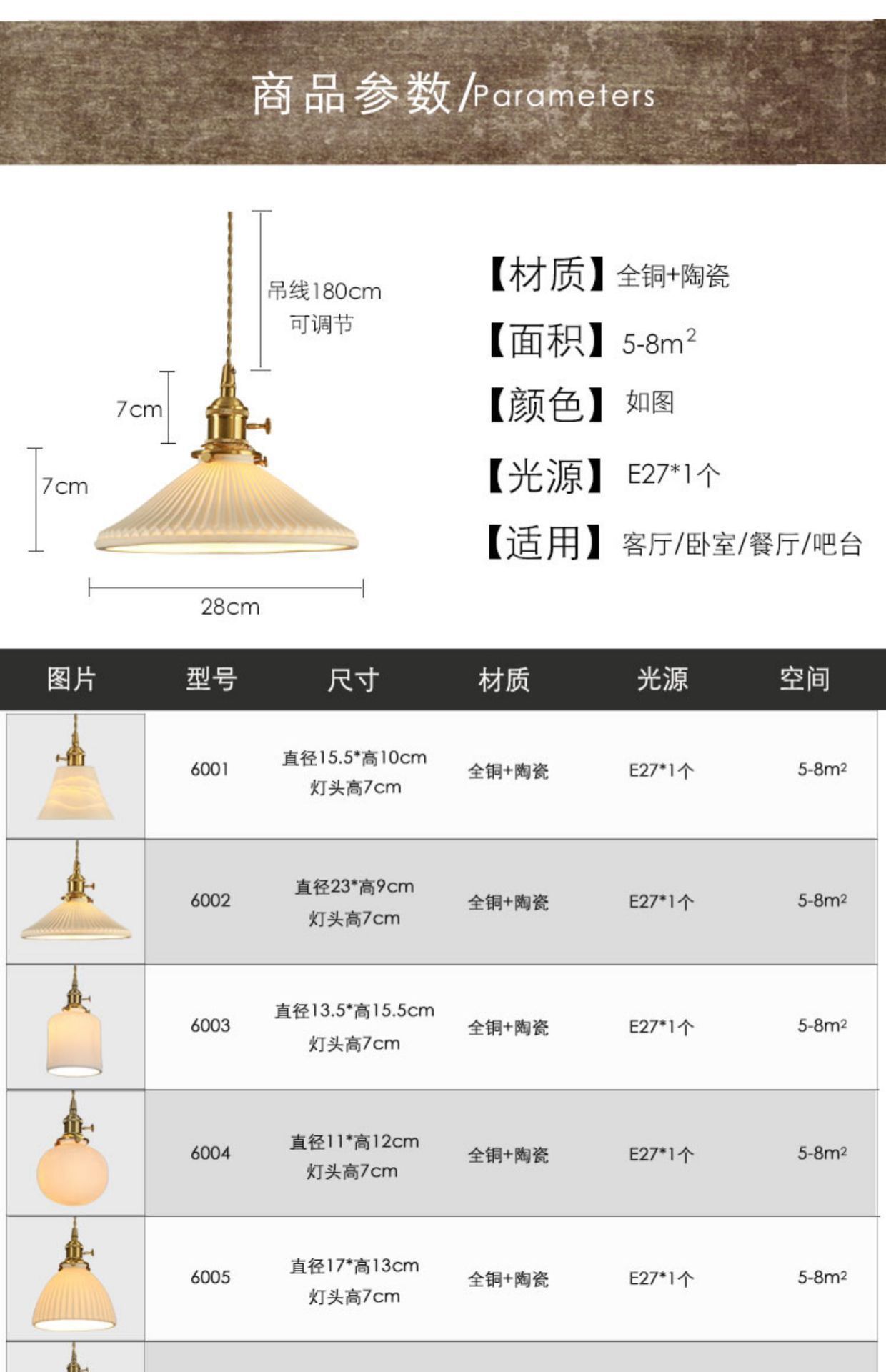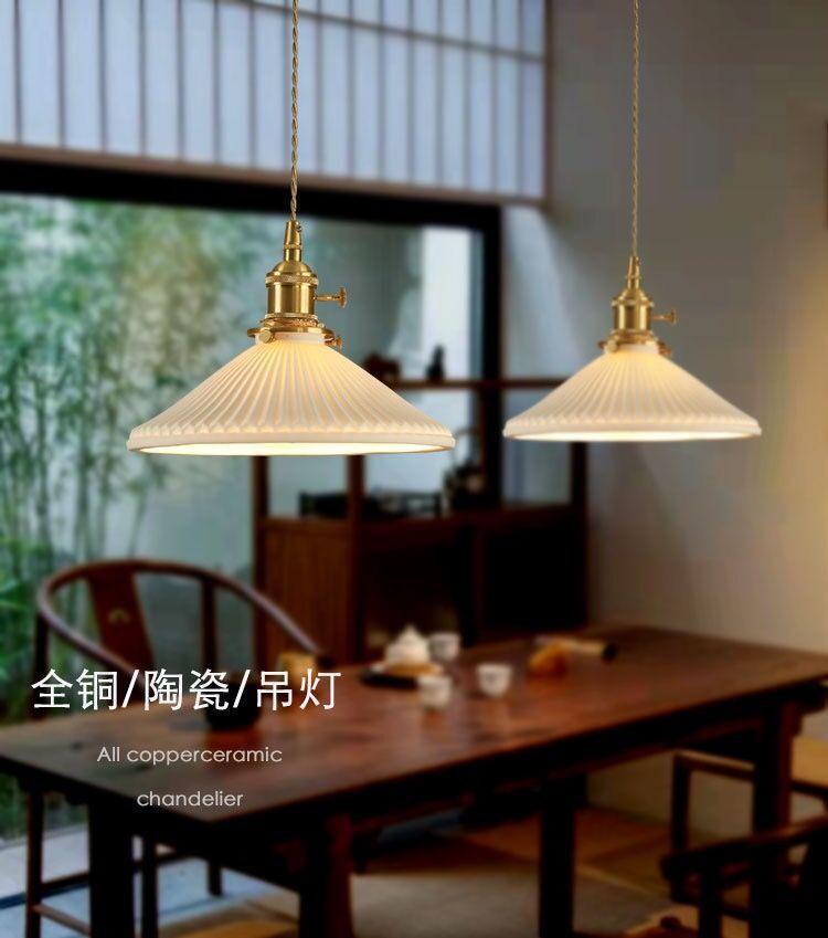 일본식 미니멀리스트 황동 빈티지 샹들리에 선술집 레스토랑 바 카운터 홈스테이 거실 입구 침실 세라믹 샹들리에